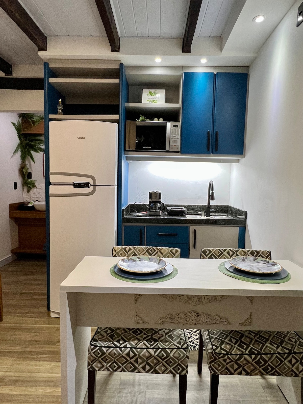Espaço acolhedor apenas 1 quadra do mar. Perfeito para casais e famílias, com localização estratégica para curtir as praias da região e visitar o Parque Beto Carrero World. Localizado em condomínio fechado com estacionamento no local, e fácil acesso a mercados, padarias e comércios próximos. 🏡 A suíte oferece: 🛏️ 2 camas de casal 🚿 Banheiro privativo 🍳 Cozinha privativa, equipada com itens básicos para preparo de refeições 🧺 Roupa de cama inclusa.
