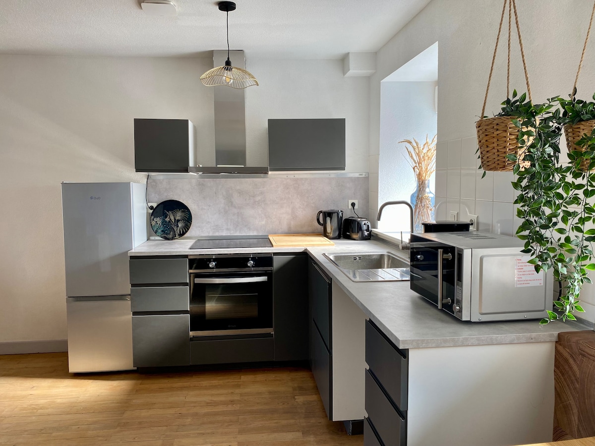 Nowy apartament o powierzchni 50 m2 na pierwszym piętrze naszej stodoły. Składa się z: - kuchnia wyposażona w zmywarkę - łazienki z prysznicem - oddzielna toaleta - 1 pokoju rodzicielskiego - 1 łóżko wysuwane (salon) Położony w Jurze pomiędzy jeziorami i winnicami, 10 minut od jeziora Chalain, 30 minut od jeziora Vouglans, 10 minut od wodospadów Hérisson. Możliwość licznych wędrówek. 1 piętro, do którego prowadzą schody Parking Tereny zielone z tarasem nieprzylegającym do mieszkania (położone 40 metrów od domku)