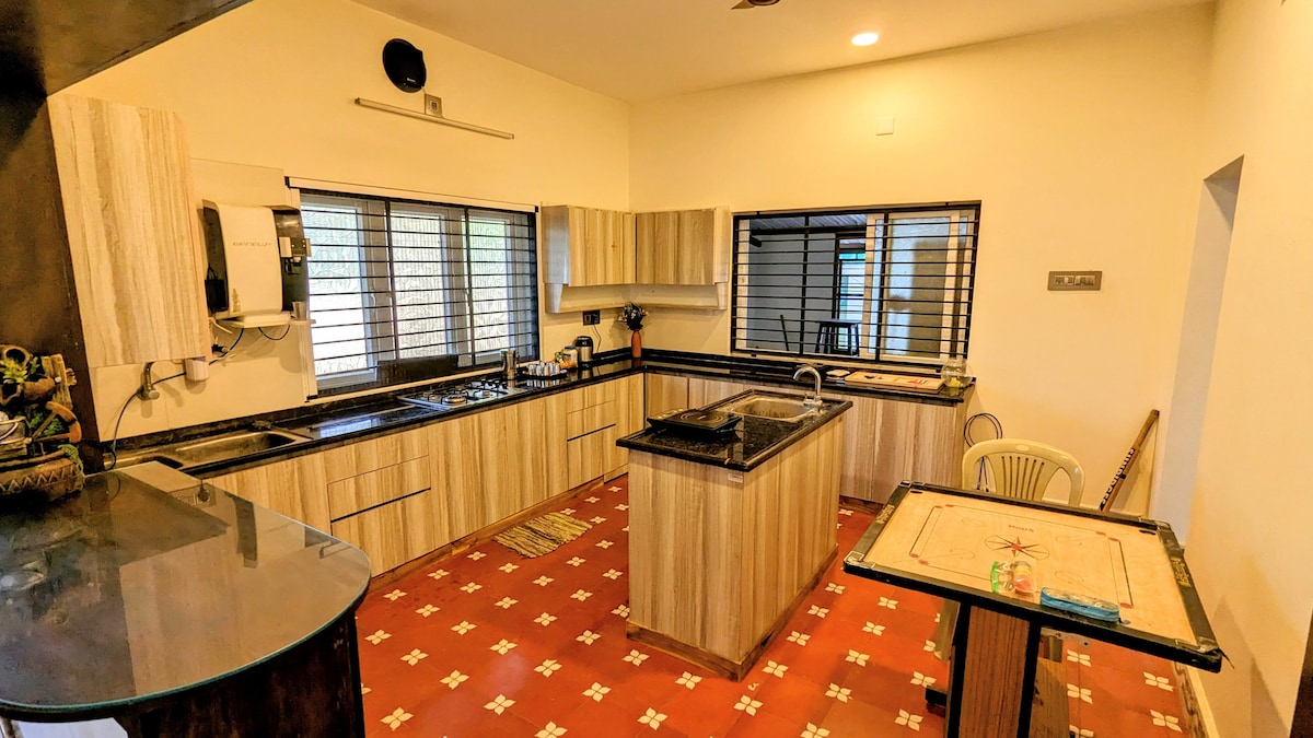 Relax with the whole family at this peaceful place to stay. fresh air and water 10000 sqfeet of land and 1500 built up, so lot of open space to enjoy