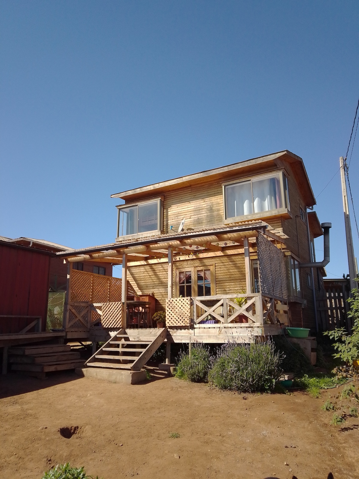 New house at front of the sea, to enjoy as a family or with friends located in condominium with 24/7 security. Przestronne i wygodne. Oszałamiające widoki na ocean. Pomieści 12 osób. Duży taras chroniony przed wiatrem z bogatym piecem, aby cieszyć się popołudniami. Dostęp do plaży Pichicuy bezpośrednio z kondominium, 10-minutowa wędrówka do plaży, przez chronione tereny podmokłe z różnorodnością flory i ptaków.