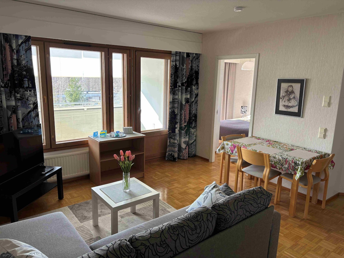 Niedawno odnowiony schludny i elegancki apartament typu studio w spokojnej okolicy w centrum Juua. Miejsce parkingowe tylko kilka metrów od drzwi wejściowych. Prawie bez barier. Tylko 2 schody przy drzwiach wejściowych. Ośrodek zdrowia, sklepy, kościół i szkoły w promieniu 500 metrów. Obok łóżka jest miejsce, a na ścianie wieszak na urządzenie c-pap.