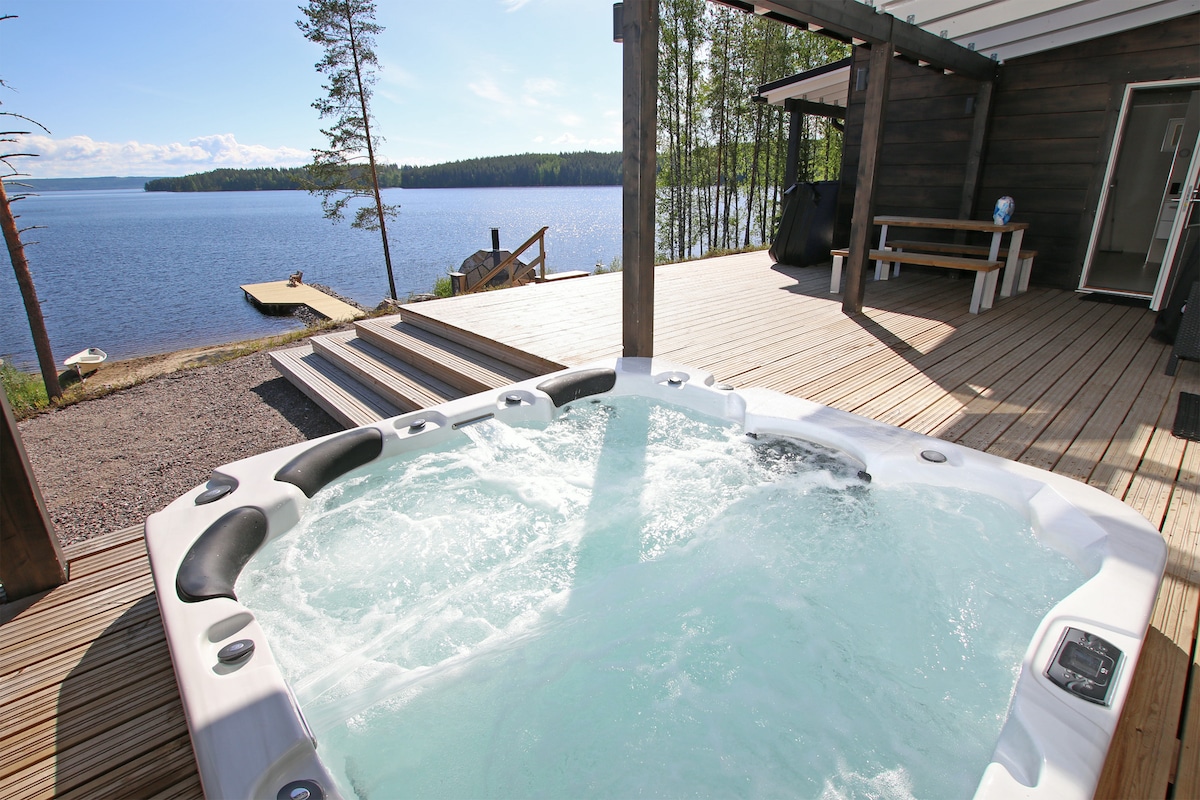 ‼️ Allergy cottage, no pets ‼️ (Due to our family member's severe allergy/asthma). Winter 2026: possibility use downhill skiing supplies, ask when booking. Longer vacation: (6 night) tickets for the spa included. A unique place on an island with a road. You will experience complete peace. Shower and toilet A great sauna experience Dishwasher, Washing machine, Tumble dryer, hair dryer, washing equipment, TV, micro, floorheating, aircondition, etc Cleaning 100€, bedlinen & towels 15€.