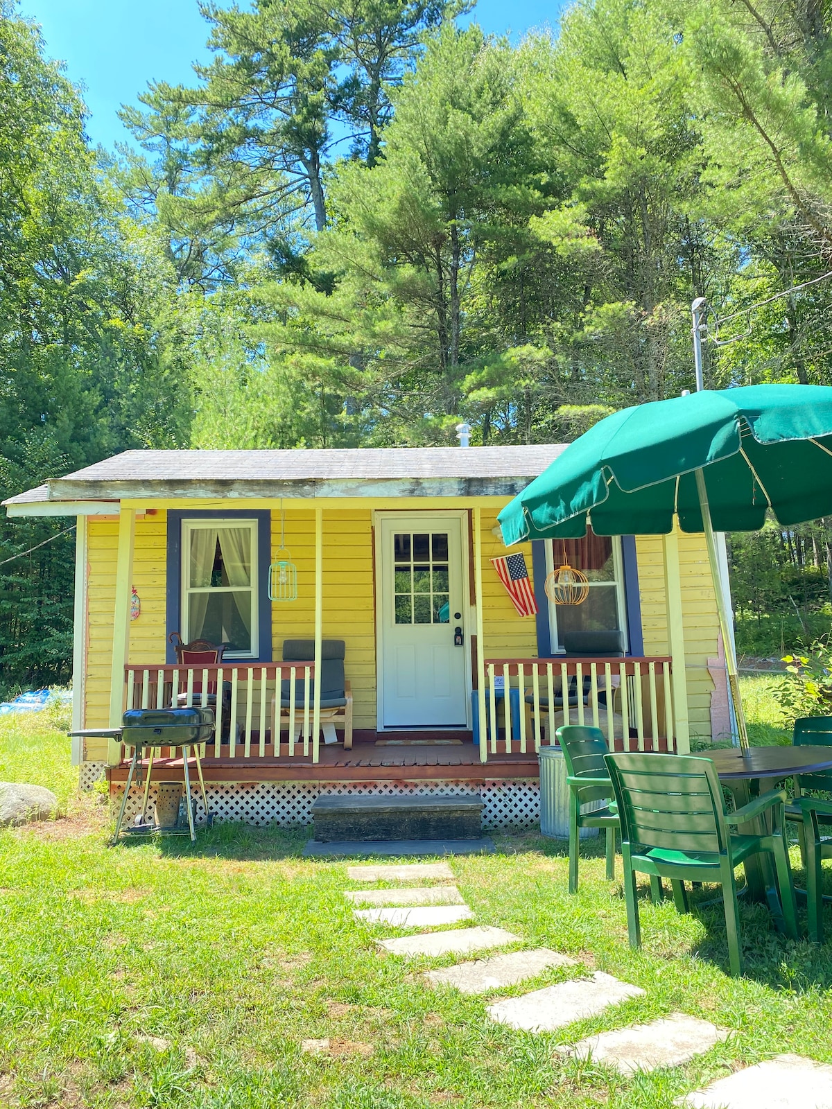 A serene escape for couples or solo creatives — slow mornings, forest views, and evenings in the hand-built cedar soaking tub. • Cedar tub under the stars • Fire pit & forest patio • Queen bedroom w/ sliding doors to woods • Kitchen (induction stove-top, air fryer, coffee & tea) • Outdoor shower (seasonal) • Shared property w/ main house, but cottage & patio are your private spaces • Minutes to Narrowsburg shops, hikes & Delaware River Perfect for quiet inspiration or a romantic weekend away.