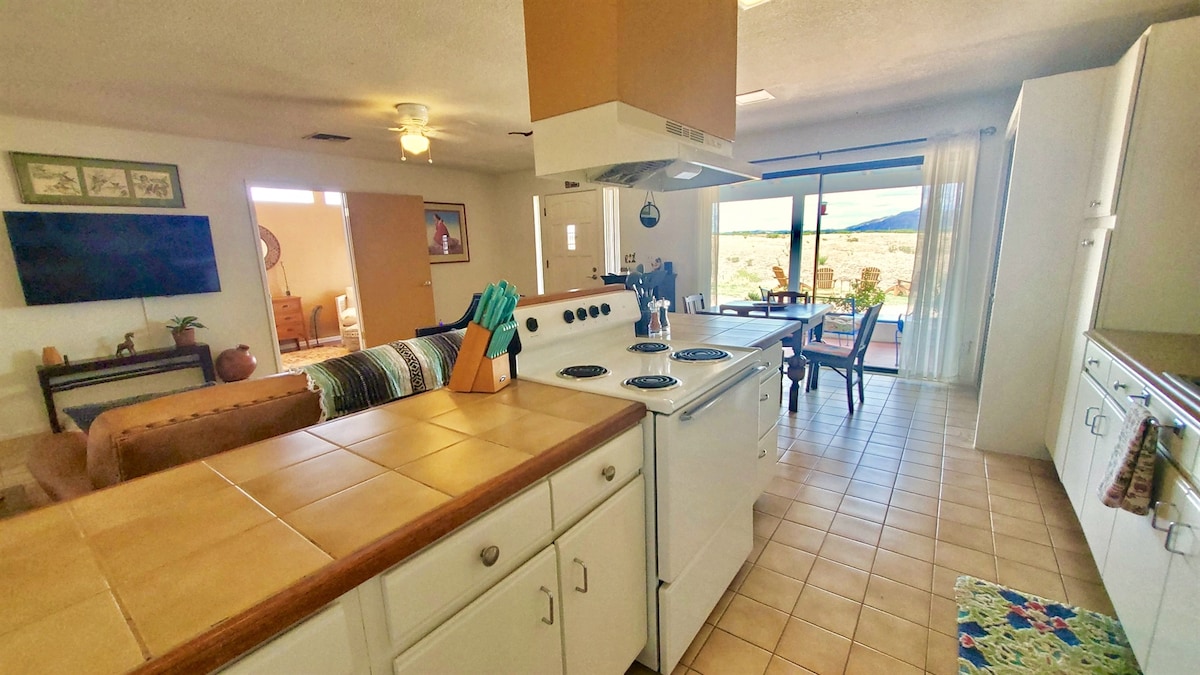 Contemporary Casita in Northeast Tucson, adjacent to Saguaro National Park East Located in the heart of the Sonoran Desert, this 1B/1B casita offers stunning mountain views and a peaceful desert setting. Just steps from SNP trails and a short drive to shops, restaurants and bars, it’s the perfect retreat The casita features a new, fully equipped kitchen, BBQ, and private patio with a telescope for stargazing. The cozy bedroom includes a queen-size bed and climate control for ultimate comfort