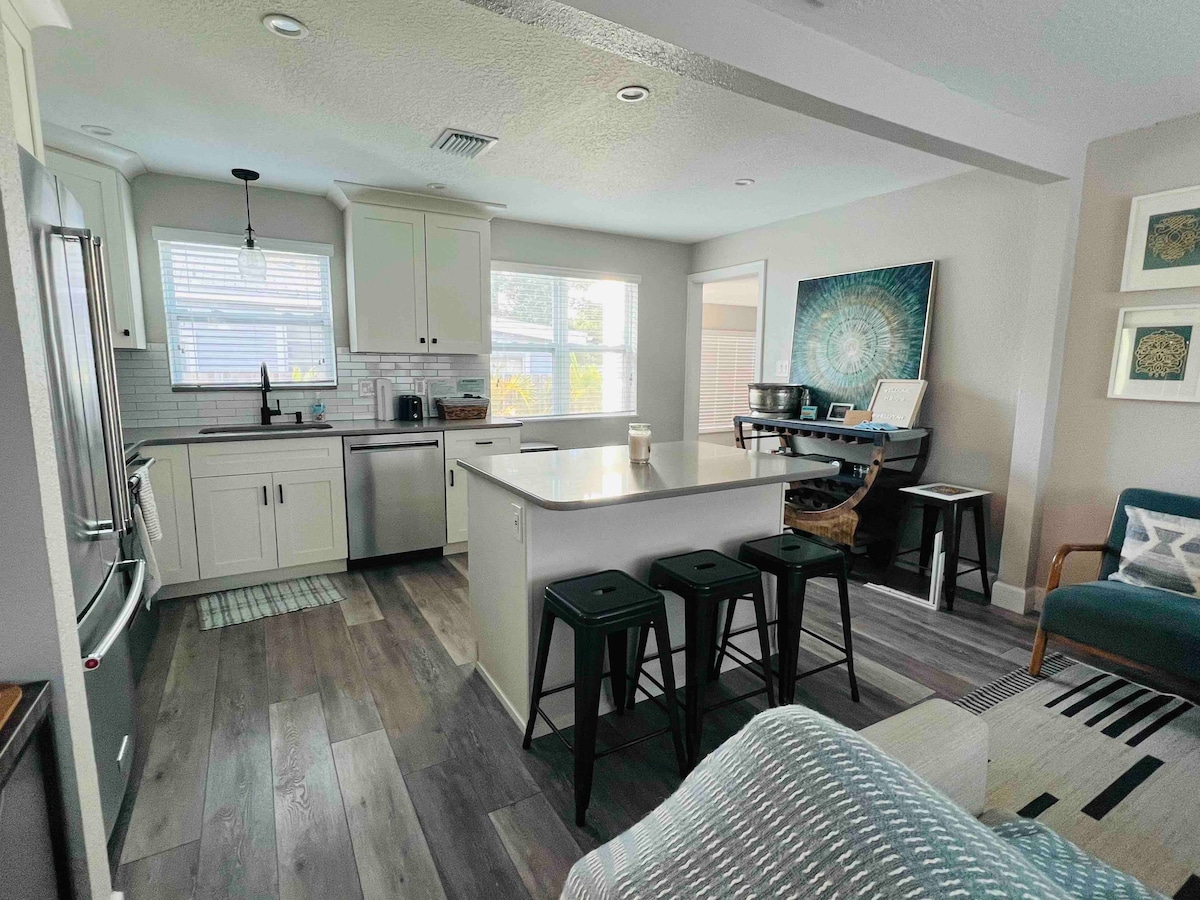 W pełni umeblowany dom 3 osobowy w Historic Kenwood, 15 minut od białych piaszczystych plaż i mniej niż 10 minut od centrum Sankt Petersburga. W pobliżu znajdują się restauracje, sklepy, browary, przystanek trolejbusu plażowego i punkt wypożyczania rowerów. Wypij poranną kawę w nasłonecznionym kąciku śniadaniowym lub w spokojnym pokoju Florida i spędź relaksujący wieczór pod sznurami lampek na prywatnym patio na podwórku.