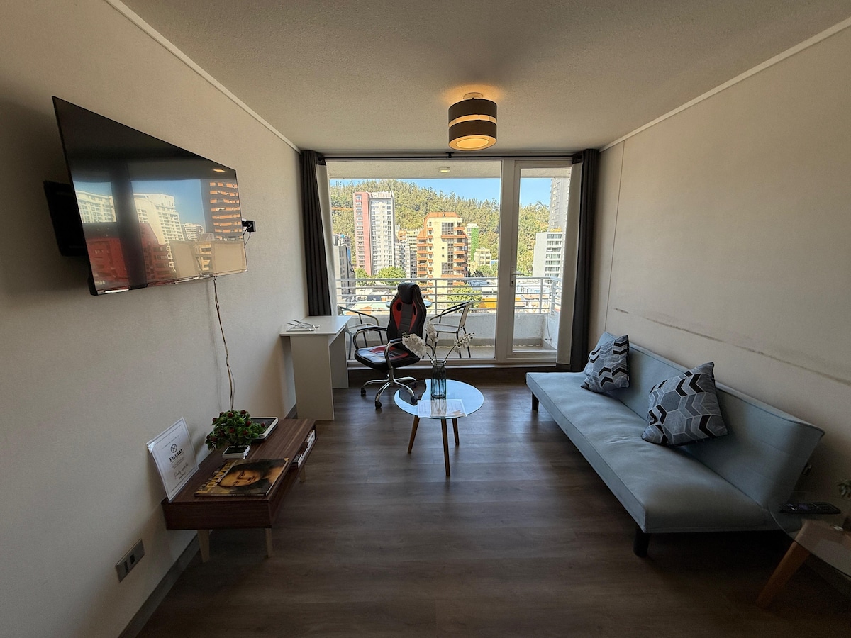 Bezpieczne i centralne zakwaterowanie. Nowe udogodnienia, prywatny parking, pokój dwuosobowy z telewizorem, ogrzewaniem i łaznienką + pokój z łóżkiem rozkładanym dla 1,5 osoby. Salon z rozkładaną sofą, ogrzewaniem i telewizorem z dostępem do Internetu i telewizją kablową. Wyposażona kuchnia, pralka/suszarka, kuchenka mikrofalowa i wszystko, czego potrzebujesz do gotowania. Taras ze stołem, krzesłami i pięknym widokiem. Dostęp do siłowni po wcześniejszej rezerwacji. Kilka przecznic od centrum Concepción, komunikacji miejskiej i Líder Express.