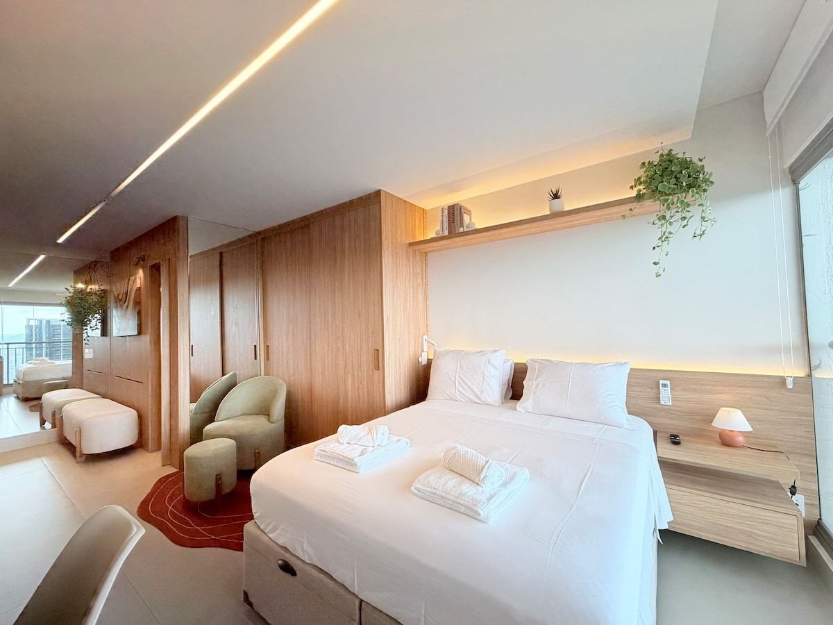 Studio Moderno w Itaim Bibi 45 m² Położony w samym sercu Itaim Bibi, jednego z najszlachetniejszych regionów miasta. Przestrzeń łączy w sobie komfort, praktyczność i wyrafinowanie, idealne na wypoczynek lub pobyt służbowy. Uprzywilejowana lokalizacja zaledwie kilka minut od Av. Faria Lima i Av. JK, z łatwym dostępem do doskonałych restauracji w mieście, ekskluzywnych sklepów, takich jak JK Iguatemi i Parks.