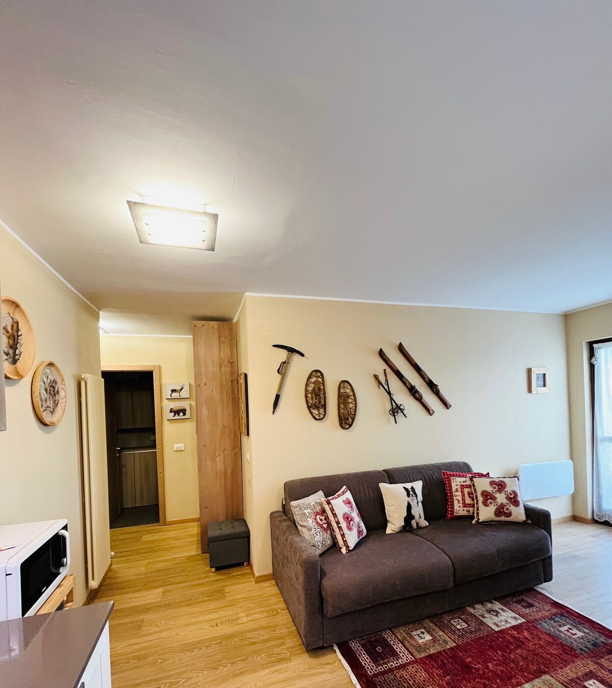 Kameralne studio w alpejskiej chacie o wysokości 1300 metrów, ze spektakularnym widokiem na Dolomity Brenta. Idealne dla par, które kochają spokój i beztroskę. Wszystkie główne usługi i atrakcje Pinzolo i Madonna di Campiglio, takie jak wyciągi narciarskie i najpiękniejsze miejsca Adamello Brenta Park, znajdują się zaledwie kilka minut jazdy samochodem. Spędzisz spokojny wypoczynek po dniu spędzonym na śniegu lub wędrówce po Dolomitach.