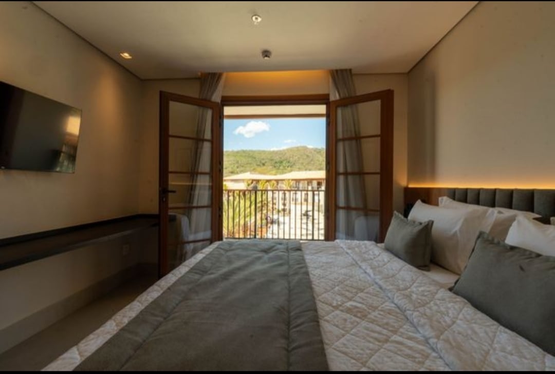 Resort, apartamento p/ até 4 pessoas, cama de casal e sofá-cama casal. Possui ar-condic, banheiro, TV, frigobar e varanda com vista para a serra. Ideal para casal, família ou amigos que buscam conforto e contato com a natureza. ✔ Academia e Sauna ✔ Restaurante com gastronomia regional e contemporânea ✔ Playground e espaços para crianças ✔ Piscinas adulto e infantil ✔ Áreas de convivência e relaxamento ✔ Áreas de recreação para toda a família Feriado 1 de Maio Pacotes de Seg a Quin/ Quin a Seg