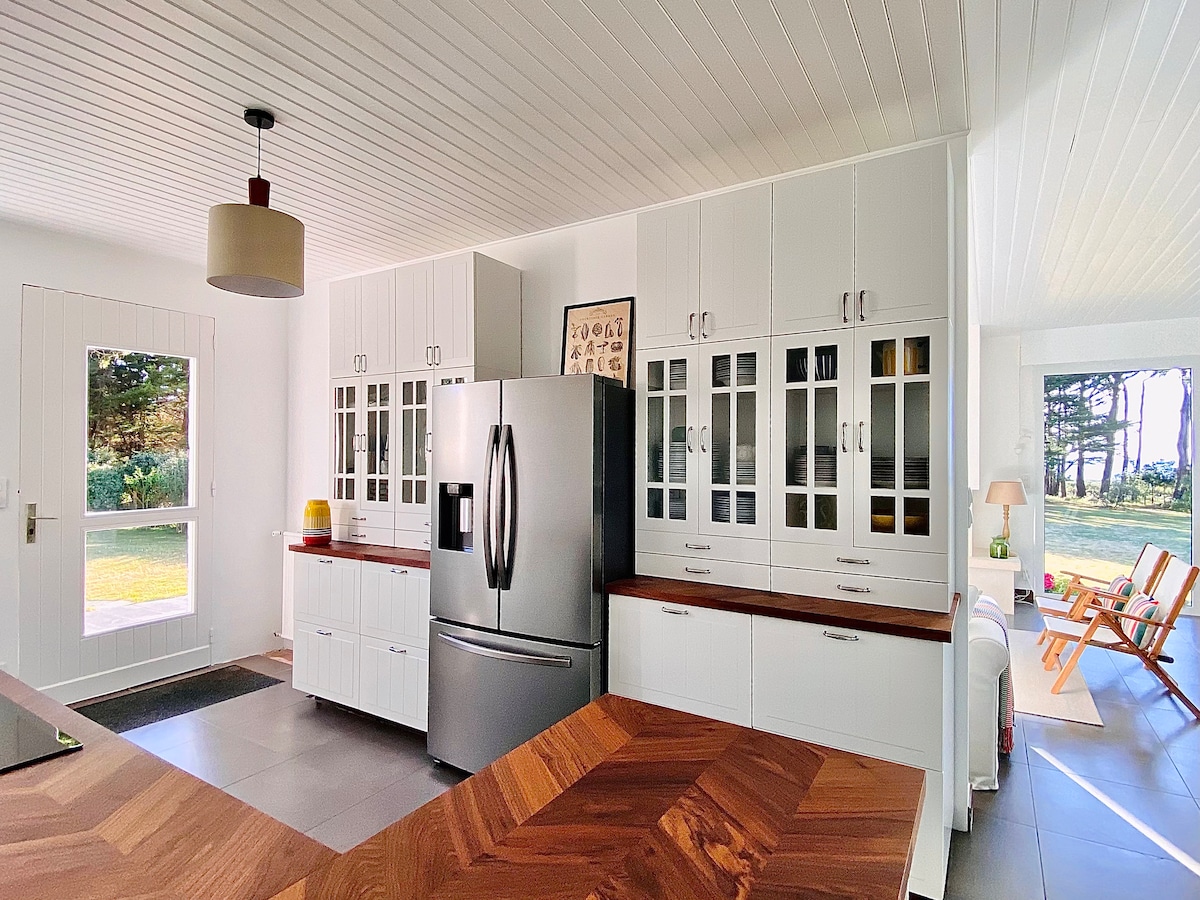 Mały dom wakacyjny z dużą ilością charakteru zbudowany w 2014 roku na pięknym terenie z drzewami, 300 m od plaży i 400 m od wioski ze wszystkimi udogodnieniami. Funkcjonalny i łatwy do życia w piękne dni, wygodny i ciepły w sezonie, umeblowany w duchu nadmorskiego kurortu z lat 60. Idealne miejsce na relaks, ale także zwiedzanie półwyspu Guérandaise, Brière, Zatoki Morbihan lub Belle-Ile-en-Mer (od La Turballe).