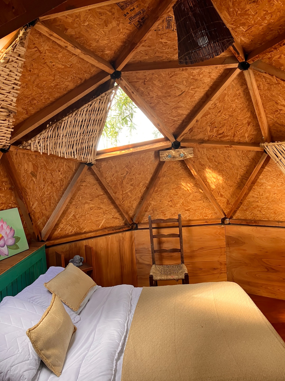 Zrelaksuj się w tym uroczym drewnianym domku z tradycyjnym strzechowym dachem, położonym zaledwie kilka przecznic od wioski Manantiales i oszałamiającej plaży Bikini. Zaprojektowana dla par szukających spokoju, prywatności i naturalnego piękna bez poświęcania komfortu, chatka jest w pełni wyposażona, aby cieszyć się nią przez cały rok. Dzięki doskonałej izolacji i konstrukcji termicznej latem jest tu chłodno, a zimą ciepło.
