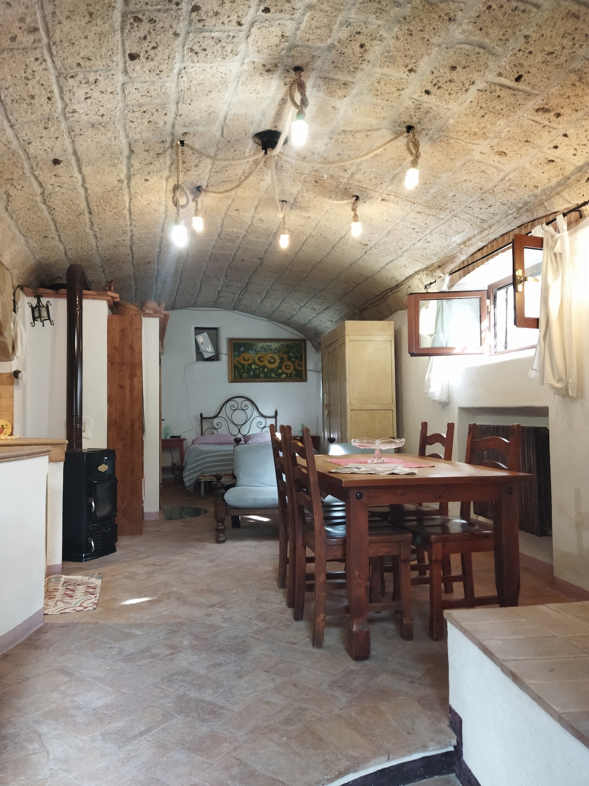 L'appartamento é due piani sotto la piazza, interamente scavato nel tufo. Con vista sulla valle, é isolato dai rumori della strada, tranquillo, privato e molto accogliente. Le pareti in tufo gli donano un'aria antica, per trasportavi altrove nel tempo. Si raggiunge a piedi, attraverso un ponte pedonale che vi porta direttamente nella piazza dove c'é l'immobile. É perfetto per brevi soggiorni di completo relax, ma con la cucina totalmente attrezzata si sfrutta al massimo.