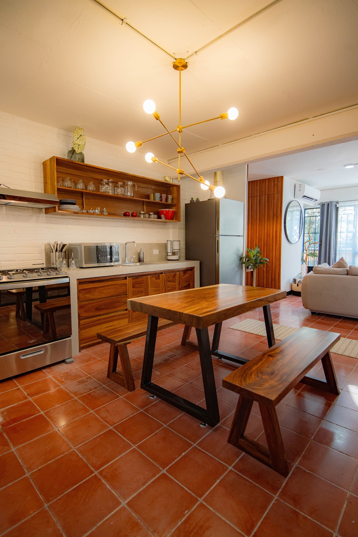 Apartament posiada pokój dwuosobowy z 2 podwójnymi łóżkami z klimatyzacją. W innym pokoju znajduje się bar, kuchenka indukcyjna,lodówka, kuchenka mikrofalowa, pełna łazienka i mała pralnia. Znajduje się w Pitillal, Puerto Vallarta, jest obszarem handlowym, gdzie można znaleźć najlepsze ceny w mieście, jest łatwość transportu publicznego, to 2 przecznice od placu i kościoła Pitillal. Malecón 17 min. Lotnisko 15 min. Autobus Centralny 17 min.