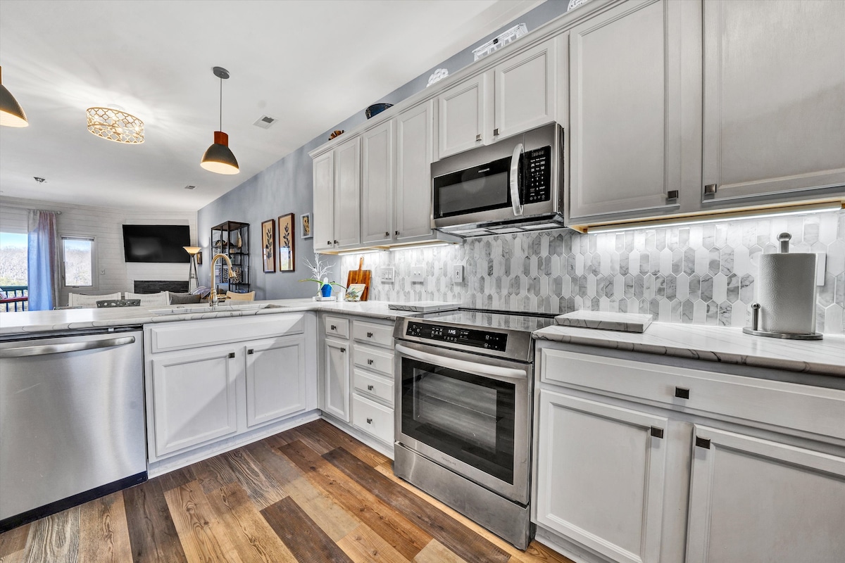 Enjoy easy lake access from our first-floor end unit with a gentle walk to docks & beach! Recently renovated with brand new beds, sofas, linens, appliances & LVP flooring. Designed for comfort with down-free bedding, whole home air purifier & pillow choices. Fully stocked kitchen plus 2 paddleboards, 2 kayaks, games & more for the perfect getaway. Perfect for families, swimming, kayaking, golf, pickle ball & relaxing by the water!