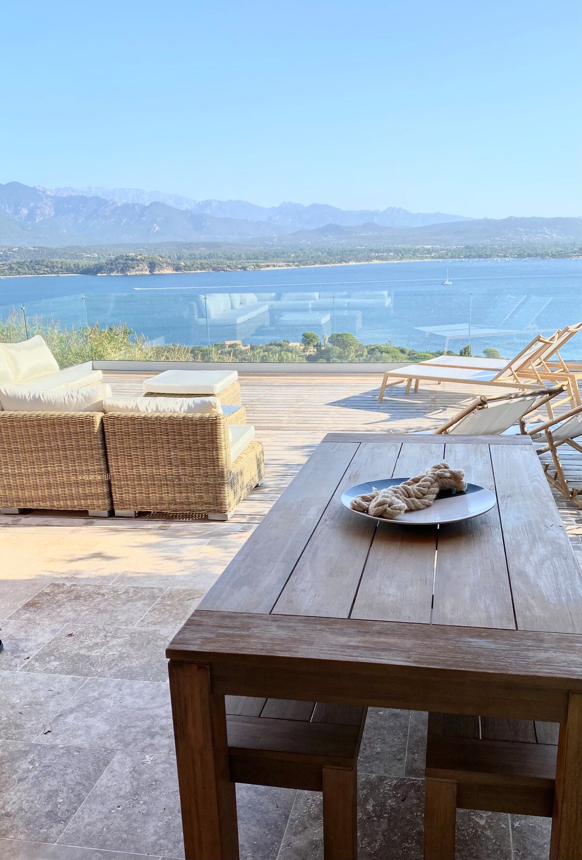 Willa położona jest na wzgórzu z widokiem na plażę Palombaggia. Sto metrów kwadratowych tarasu i basen pozwalają cieszyć się przyjemnym życiem letnim i korzystać z wyjątkowego widoku na morze. Dwie sypialnie, salon i kuchnia również mają widok na morze. Willa położona jest w spokojnej okolicy, otoczona makią. Ponadto, posiada ona prywatny dostęp (współdzielony z innymi mieszkańcami) do plaży Palombaggia, która znajduje się w odległości 1200 metrów.