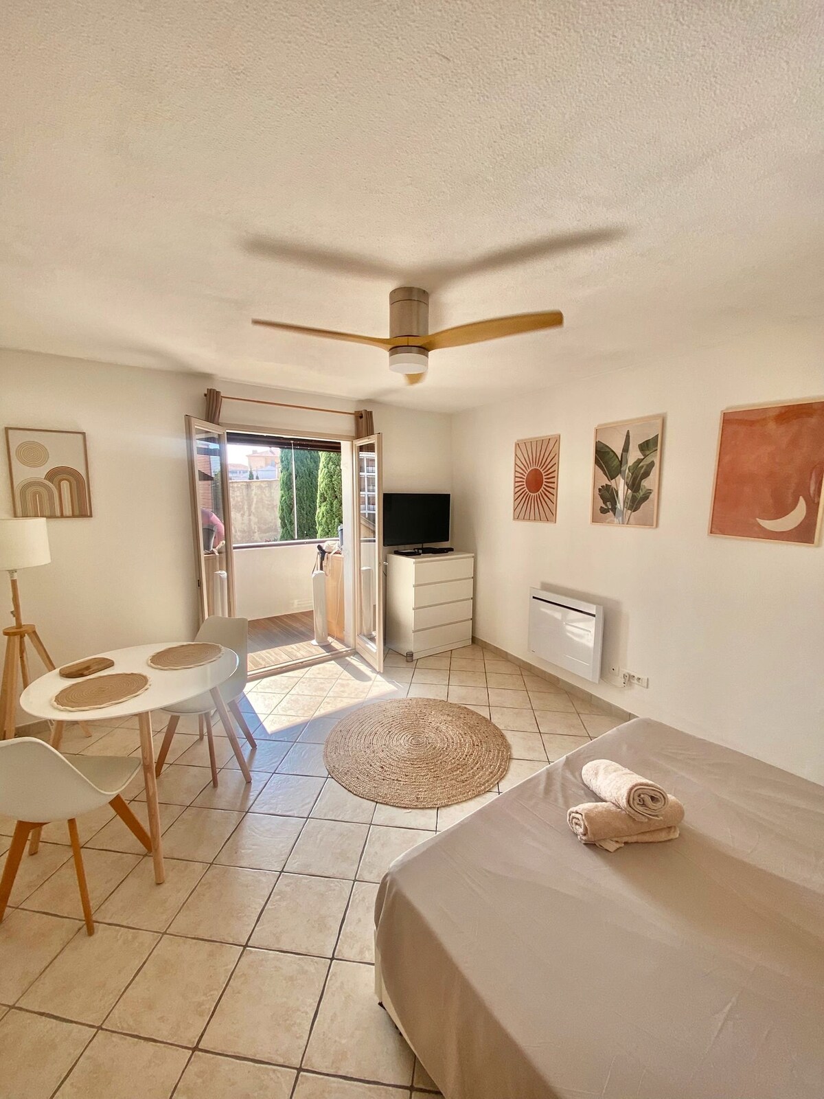 Urocze studio z małym ogrodem na zewnątrz, w spokojnej rezydencji z basenami, kortem tenisowym, kortem do petanque i kortem do ping-ponga. Idealne miejsce na relaks i odpoczynek. Mieszkanie jest dobrze wyposażone i zostało odnowione w 2025 roku. Możesz spędzić całe wakacje bez korzystania z samochodu. Wszystko jest w odległości mniej niż 5 minut spacerem: plaża, supermarket, szlaki turystyczne, restauracja.