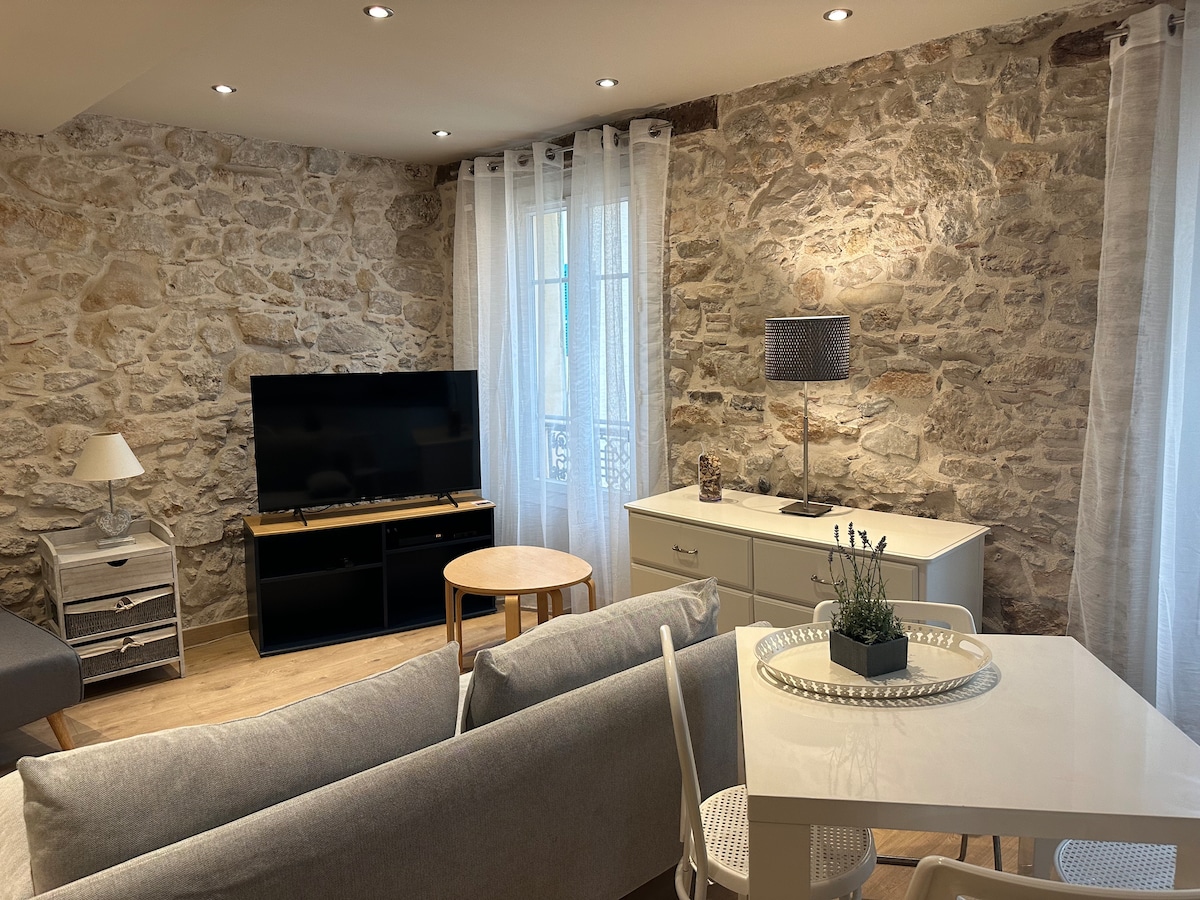 Stunning unit with 2 bedrooms and 1 bathroom (and a separate toilet) with direct view on the sea, the beach and the mountain. With all modern amenities (AC, WIFI, APPLE TV....) and beautiful decoration, this property has everything: a well equipped kitchen (washing machine and separate dryer), large sitting-room, great dining-room. Linen and towels are provided with sample cosmetic items. Located in the heart of old Antibes, it is close to the train station, buse and the provencal market!