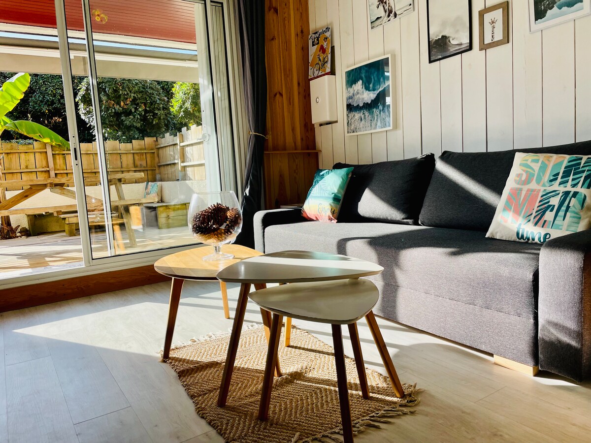 Welcome to the_beach_shack_seignosse ! Large terrace, cool apartment in summer, heated in winter and beach access 20 meters away !! My apartment is like a small independent house ! Enter through the large furnished terrace of 30m2, enjoy a living room with sofa, coffee table, desk and hammock, open to the kitchen, 2 bedrooms upstairs and a bathroom with separate toilet. The whole on 42m2.
