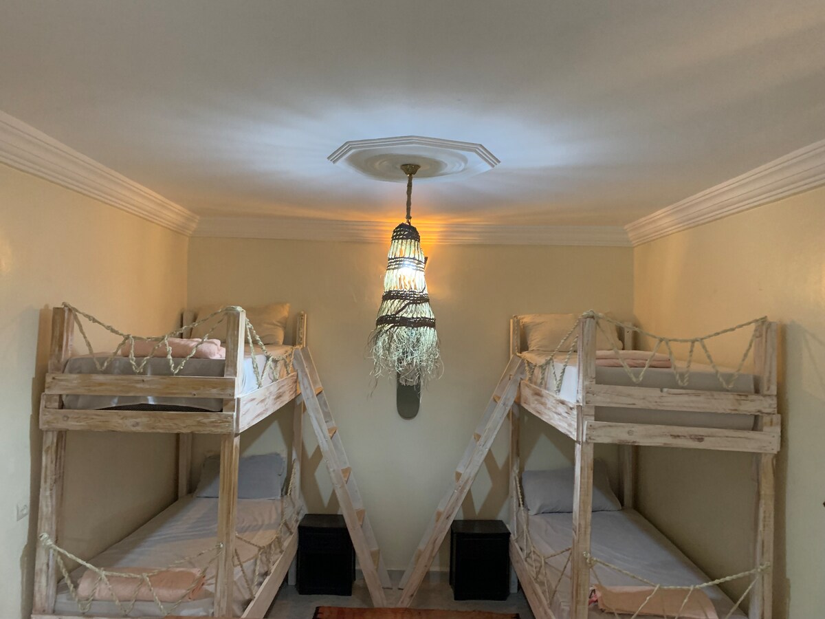 Spodoba Ci się wystrój tego uroczego miejsca w stylu berberyjskim. Położony chodnik od plaży (3 min spacerem), w małym miasteczku Taghazout, nasz nowy pensjonat posiada pokój dzienny, dobrze wyposażoną kuchnię, 9 komfortowych pokoi z łazienkami (27 łóżek w sumie), joga shala i dwa wspaniałe tarasy z pięknym widokiem. To idealne miejsce dla rodzin i znajomych, którzy chcą się zrelaksować i odkryć ten region, szczególnie dla tych, którzy lubią przygody wszelkiego rodzaju.