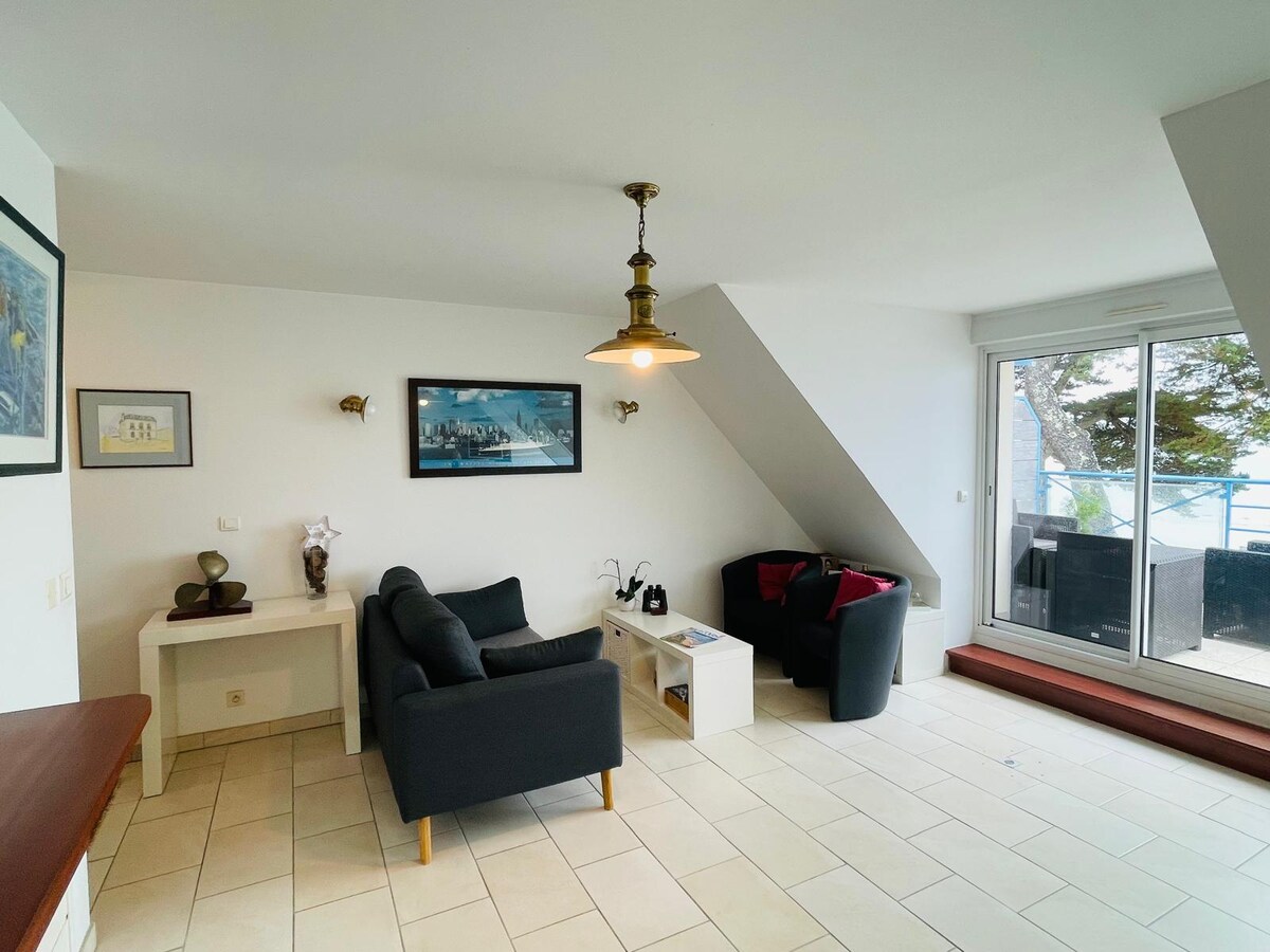 Apartament dla 4 osób typu duplex na 2 i ostatnim piętrze, balkon z widokiem na morze od strony południowej. Bezpośredni dostęp do morza z apartamentu. Prywatna rezydencja z ogrodem, naprzeciwko plaży Cap Coz, z basenem zewnętrznym o powierzchni 100 m2, podgrzewanym od 15 czerwca do 30 września, oraz z własnym miejscem parkingowym.