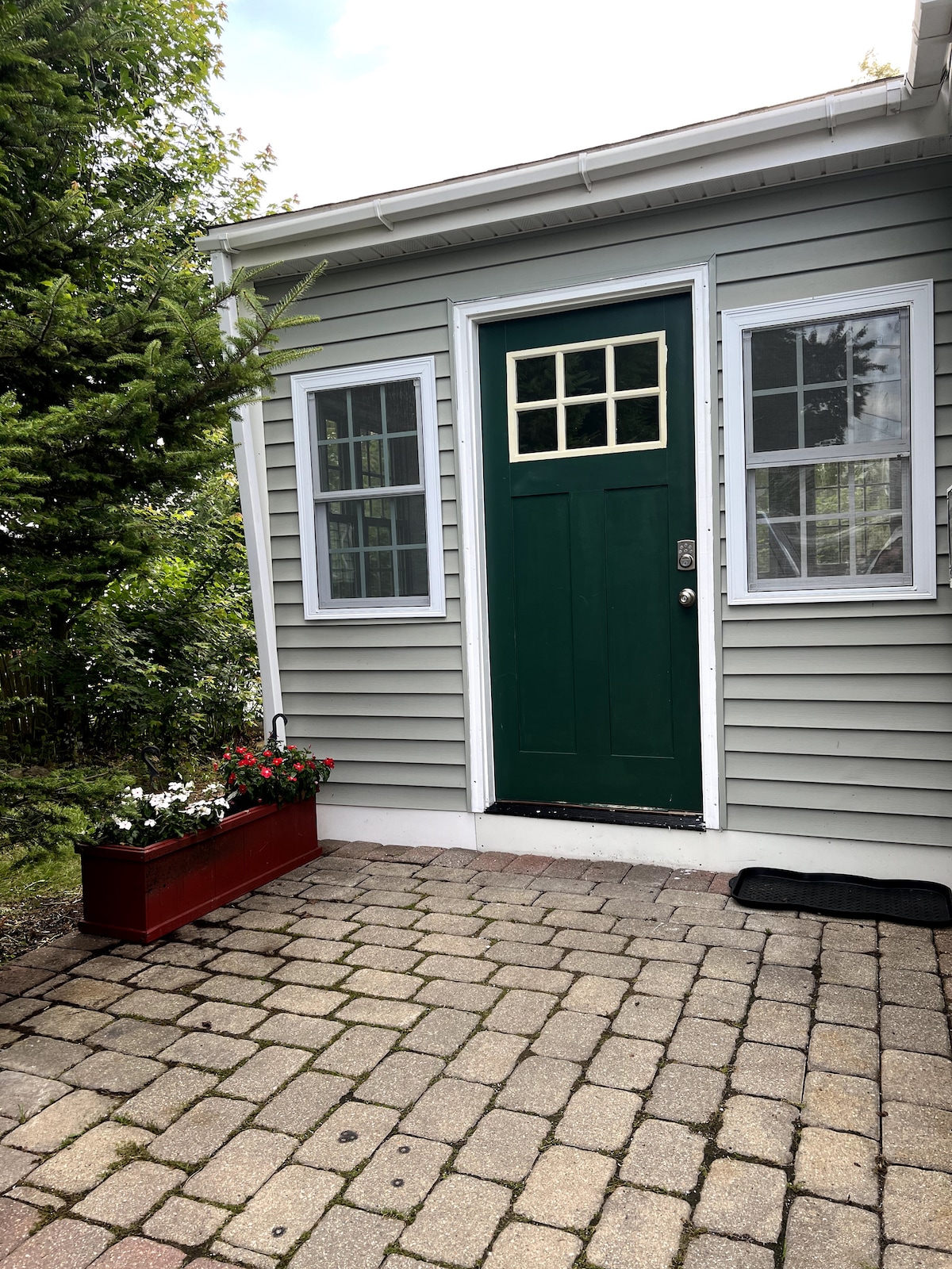 Odpręż się i zrelaksuj w tym spokojnym, stylowym i cichym miejscu z łatwym parkingiem. Spacer/rower na plażę. Ciesz się prywatną przestrzenią z jadalnią, sofą, dużym łóżkiem i prywatną łazienką. Powierzchnia wynosi ponad 600 stóp kwadratowych z dużą ilością słońca - wszystko zbudowane w ciągu ostatnich 2 lat. Odwiedź sklepy i kawiarnie w Portsmouth. Czysta, jasna i prywatna przestrzeń odpowiednia dla pary. Dwa rowery i krzesła plażowe. Znajdujemy się nieco ponad milę od plaży i łatwy dojazd do miejsc w NH/Maine.