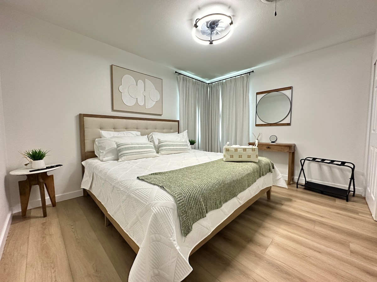 PRZECZYTAJ CAŁY OPIS PRZED DOKONANIEM REZERWACJI. Ta nowoczesna przestrzeń oferuje idealną równowagę między przystępną ceną, komfortem i stylem w spokojnej oazie na podwórku. W kabinie znajduje się duże łóżko z pianką z pamięcią, luksusowa łazienka i minimalistyczny wystrój, co zapewnia relaksującą atmosferę. Wyjdź na zewnątrz, aby cieszyć się przestronnym podwórkiem (który jest dzielony z właścicielem domu) wraz z oszałamiającym basenem. W chłodniejsze dni lub noce możesz zdecydować się na ogrzanie basenu za dodatkowe 250 USD. ZAKAZ PRZEBYWANIA ZWIERZĄT