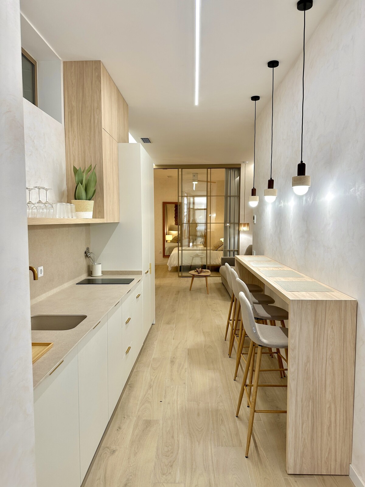 Starannie zaprojektowany apartament w samym sercu Barrio de Ruzafa. Idealny dom dla 4 osób, ponieważ ma dwie sypialnie i dwie łazienki. Dom jest w pełni wyposażony i gotowy, aby cieszyć się wspaniałym miastem Walencja. Strategiczna lokalizacja pozwoli Ci poruszać się po centrum miasta bez konieczności korzystania z transportu publicznego i zaledwie kilka minut od Miasta Nauki.
