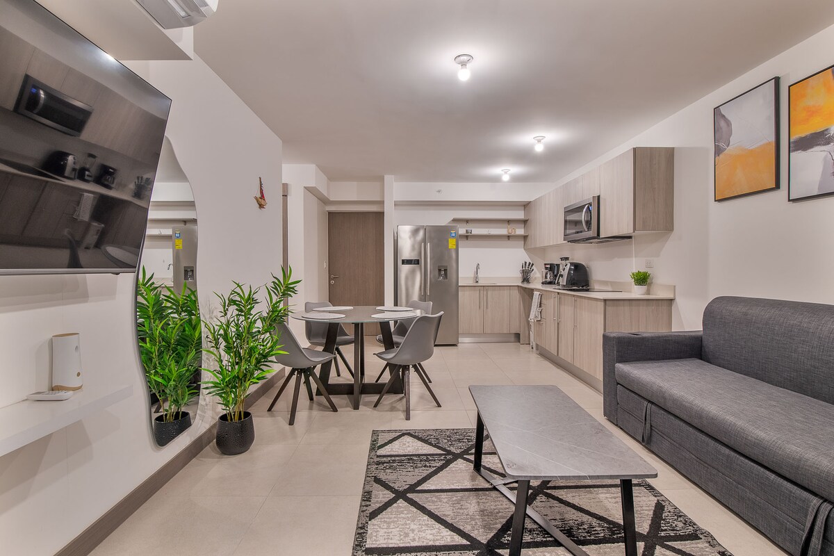 Modern apartment in Punta Esmeralda with direct and private access to the beach (Playa Mantas), less than a 5-minute walk away. Enjoy the exclusive beach club with oceanfront pools, lounge areas, and stunning views. Surrounded by nature, perfect for relaxing or exploring Costa Rica’s Central Pacific — close to Playa Blanca, Jacó, Herradura, and more. Features 2 bedrooms, a full bathroom, living room, fully equipped kitchen, and laundry area.