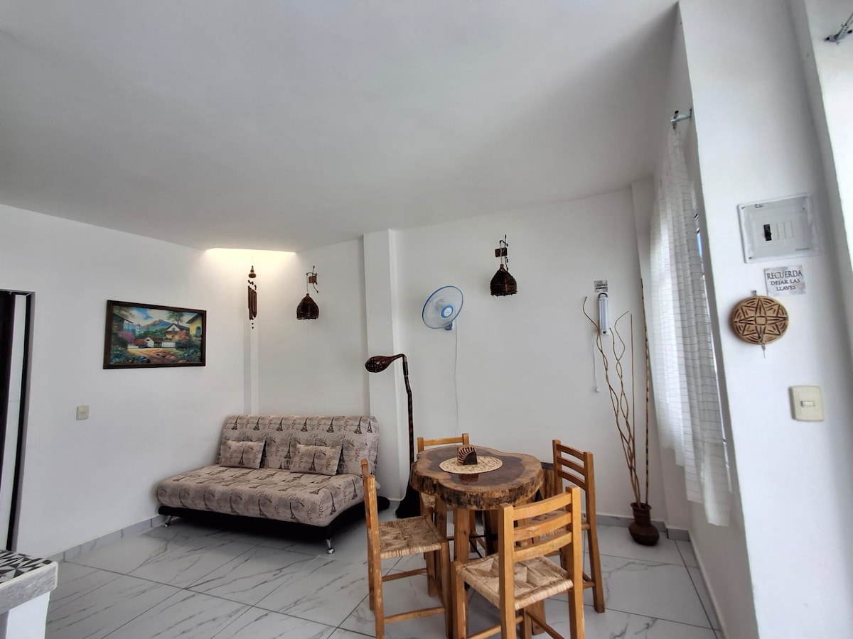 Mały domek z wygodą zapewniający bardzo przyjemny pobyt, 10 minut od plaży. (Ojo jest w trakcie budowy podwórka, ponieważ ulepszamy obiekty), dlatego cena. Z jednej strony znajduje się namiot, w którym można zaopatrzyć się w artykuły spożywcze i mały bar. Przed domem znajduje się restauracja, w której możesz korzystać z basenu bez spożywania posiłków. W mieście można znaleźć małe, ale bardzo bogate restauracje z gastronomią - od antojitos po owoce morza.