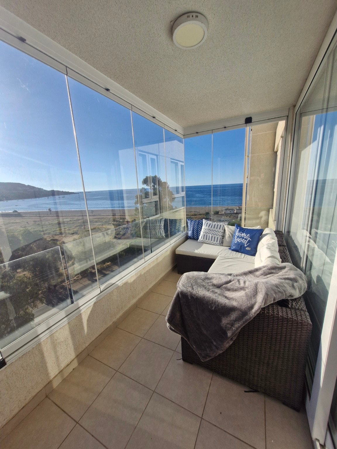 Depto, 7 personas, wifi, smart tv. Maravillosa vista al mar. Sin ráfagas. Roller blackout. Cocina y comedor equipados, parrilla. No incluimos sábanas ni toallas. Cama King pieza principal. 1 o 2 estacionamientos. Primera línea, salida directa a playa. Múltiples áreas comunes canchas fútbol y tenis, 3 piscinas y laguna navegable con kayak incluidos. En la playa hay quitasoles y cancha de Volleyball. Muy cerca playa los Lilenes, bosque de eucaliptos. Restaurantes y pubs a pasos del condominio.