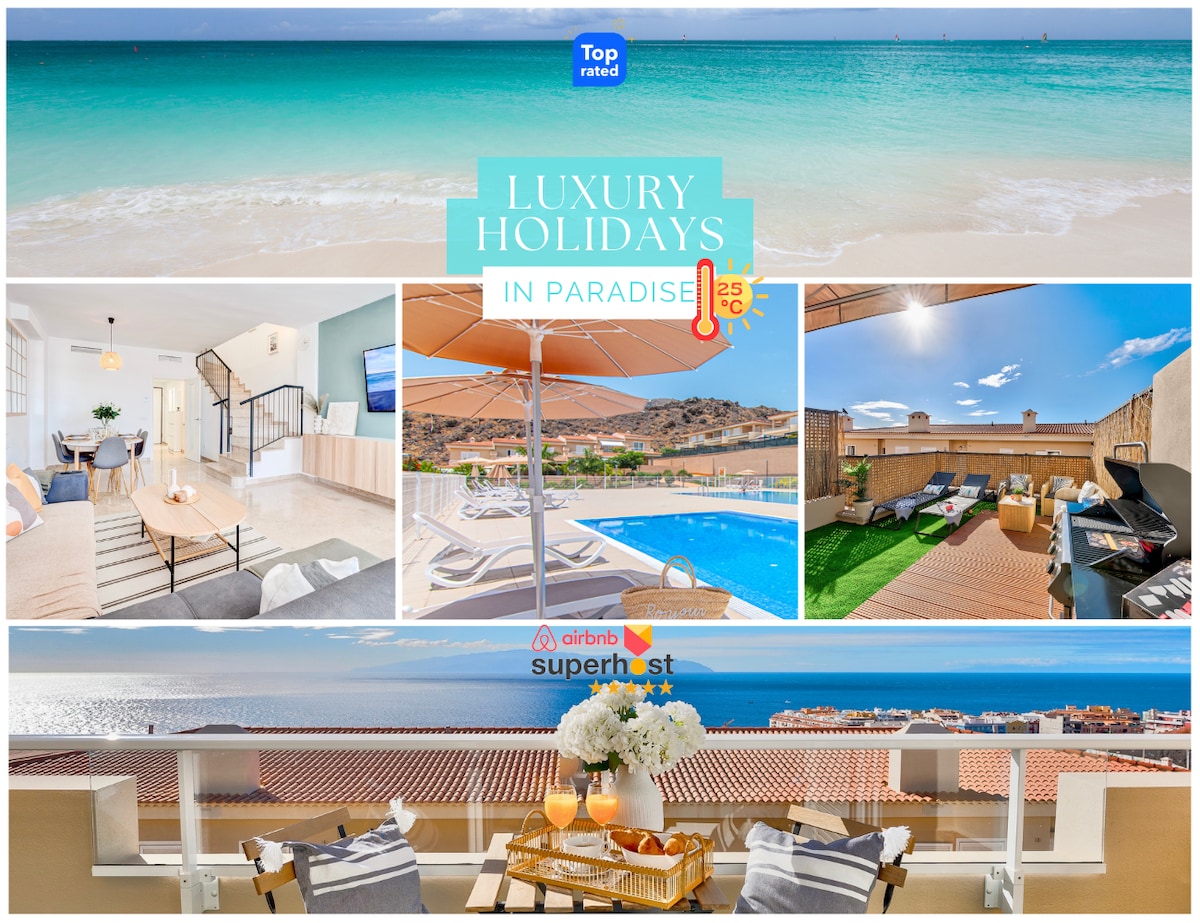 Exclusiva casa adosada de 2 dormitorios decorado al mejor estilo Beach House, con detalles del sol, la playa y la naturaleza. Relájate, desconecta y disfruta de esta experiencia única. Desde la planta superior disfrutarás de impresionante vista al mar y a la Gomera. 2 dormitorios, 3 baños y terraza con barbacoa de gas con hamacas. Parking privado en la planta baja de la casa. SmartTV, internet de Fibra y aire acondicionado (todo incluido en precio).