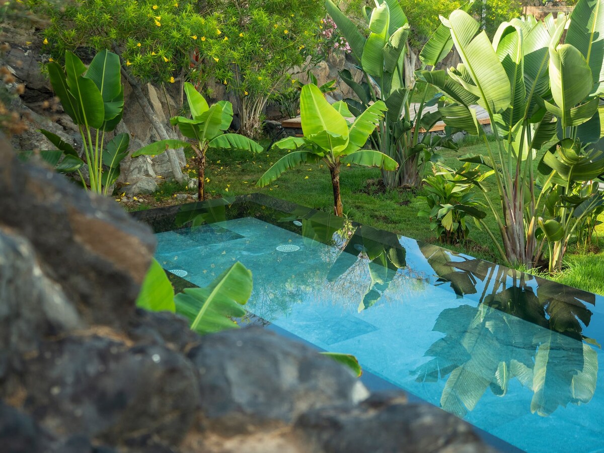 Spokojne zakwaterowanie na relaksujące wakacje z niesamowitym widokiem na ocean i ogród. Apartament znajduje się 15 minut od lotniska South, w odległości spaceru od oceanu i w pobliżu głównej infrastruktury Palm Mar. W pobliżu znajdują się supermarkety, bary nad oceanem, restauracje różnych kuchni, siłownia, studio jogi i pilatesu, plac zabaw dla dzieci. Z plaży w Palm Mar można wybrać się na niesamowitą wycieczkę kajakową do farmy małży i klifów, gdzie żyją delfiny i żółwie.