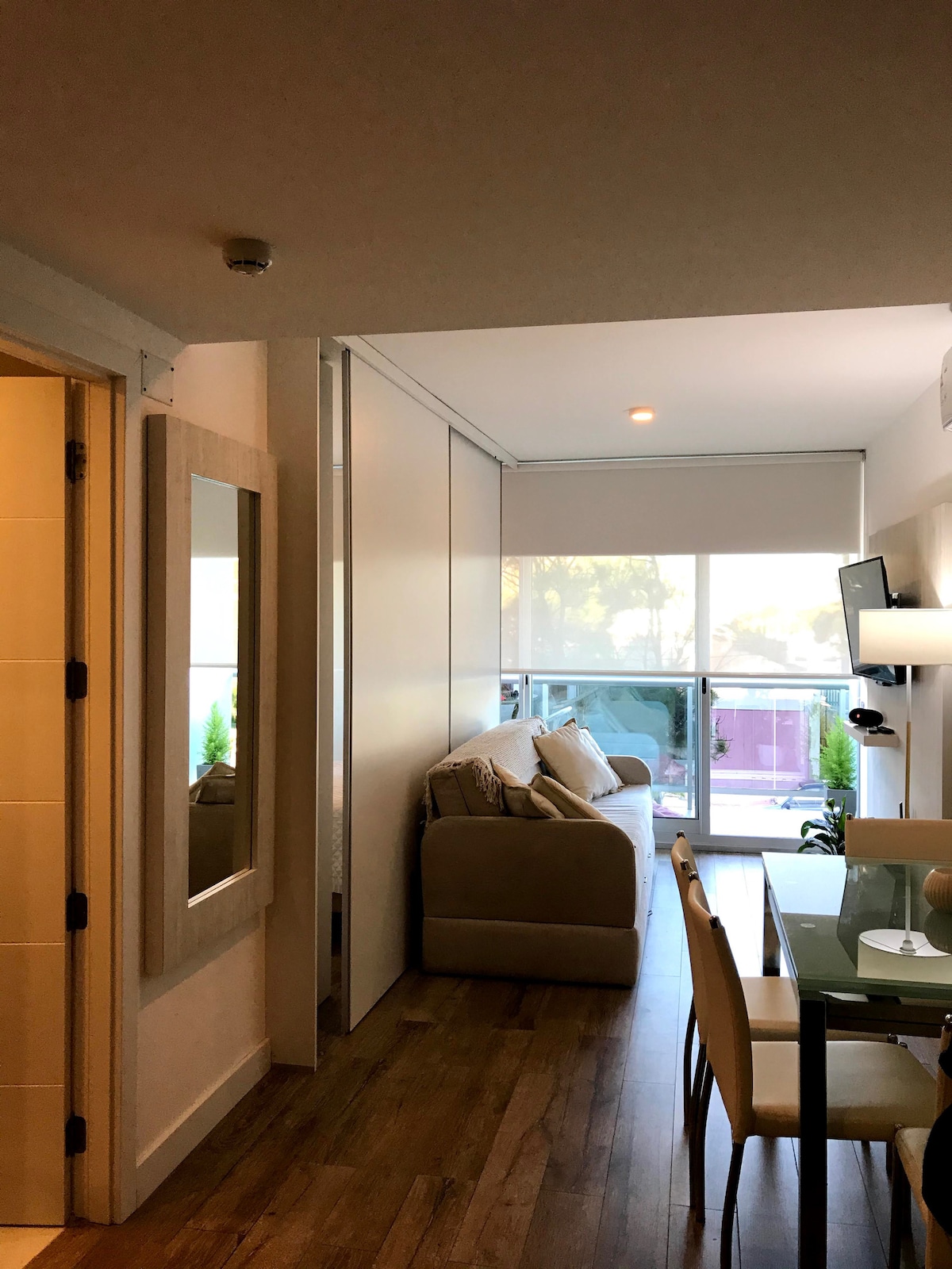 Amplio monoambiente a solo dos cuadras del Puerto y de Gorlero. Estarás rodeado de los principales restaurantes, cafeterías, tiendas y centros comerciales de la ciudad, con la Playa Mansa y Playa Brava a tan solo 5 minutos. El edificio cuenta con: Gimnasio con vista al puerto Piscina exterior en terraza con los mejores atardeceres Piscina interior climatizada y sauna Servicio de limpieza semanal