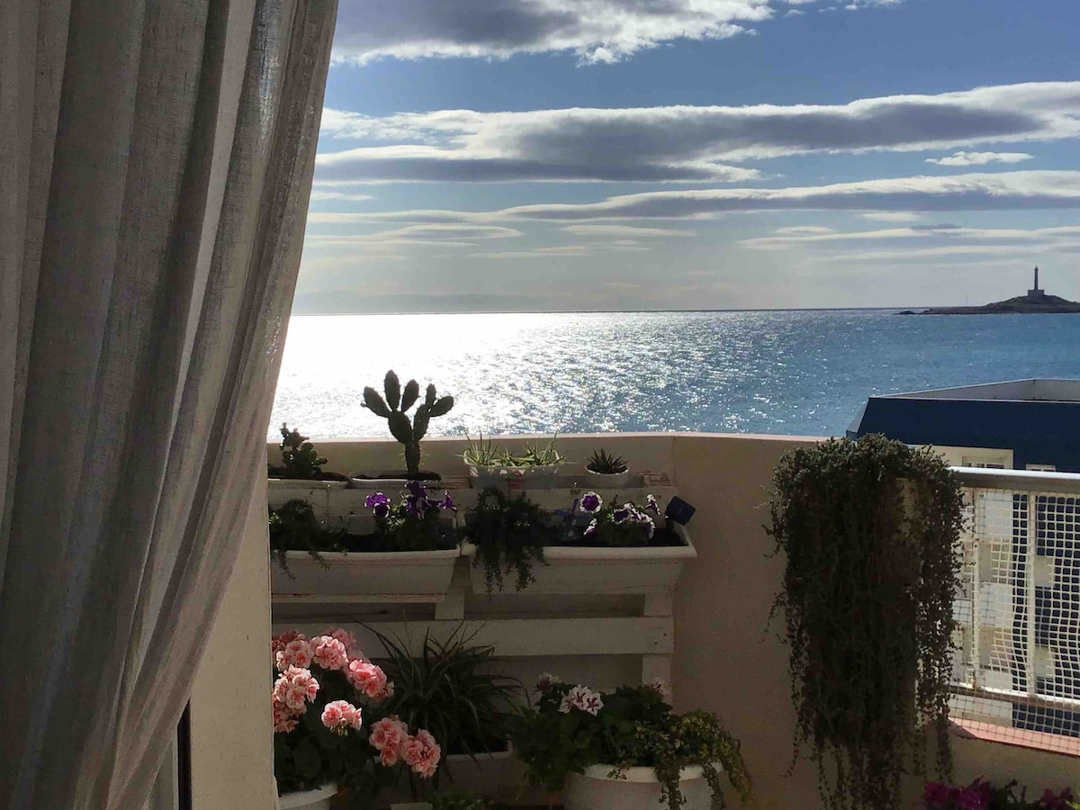 Estupendo apartamento a pocos metros de la playa. Bonitas vistas al Mar y al faro de Cabo de Palos. Primera línea de la playa. Urbanización con piscina. Próximo a comercios, restaurantes, y parada de autobús. Cerca de Cabo de Palos y próximo a zonas protegidas muy bellas como Calblanque y Calarreona. Ideal para amantes del deporte. Te va a encantar, es un lugar tranquilo, dispone de una terraza con estupendas vistas al mar.. Mi alojamiento es bueno para parejas o familias (con hijos).