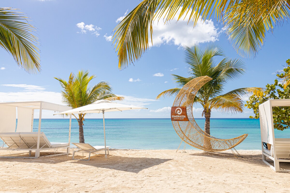 Stylowy apartament MyDRaparta w luksusowym kompleksie Aqua Esmeralda, położony tuż przy prywatnej plaży Playa Dominicus. 1 sypialnia z łóżkiem queen, salon z modułową sofą, 2 tarasy z tropikalnym widokiem. Klimatyzacja, szybkie WiFi, Smart TV i w pełni wyposażona kuchnia. Basen, Beach Club, parking i ochrona 24/7. Idealny dla par, rodzin i osób szukających komfortu i karaibskiego relaksu.