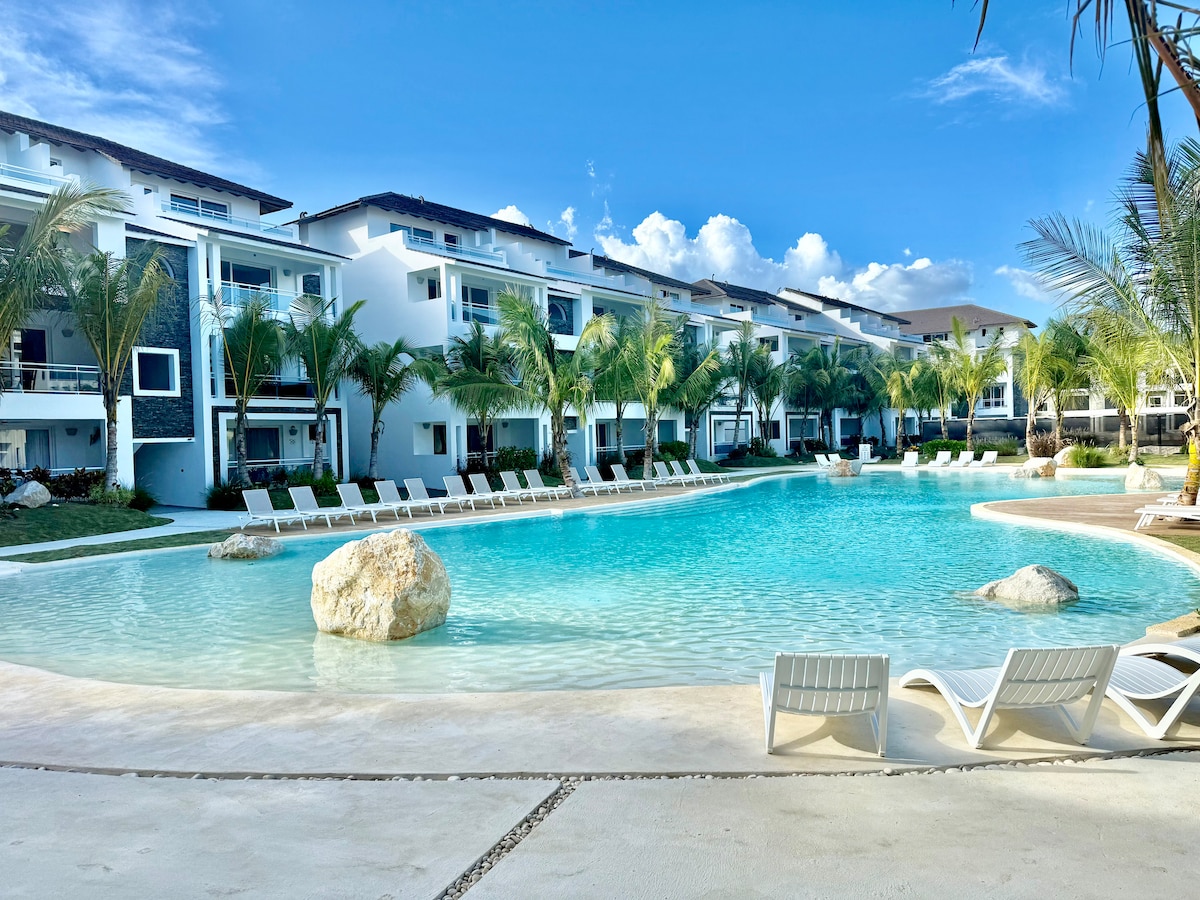 🏖️ Modern 2BR/2BA apartment just steps from a stunning private Caribbean beach with turquoise waters. Located in the gated Aqua Esmeralda community with exclusive access to Dominicus’s only private beach club! Comfortably sleeps 6, expandable to 8 — ideal for families or friends. ⚠️ Note: Ongoing construction in the condominium may cause daytime noise and the presence of workers in common areas. Discounted rates apply. The beach area remains peaceful and unaffected.