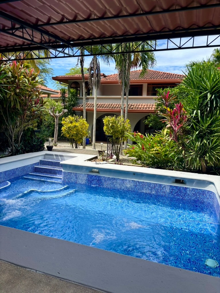 From the moment you arrive, Casa Jocote welcomes you with a relaxed and natural ambiance. The outdoor area features light-colored stone flooring that blends seamlessly with the tropical vegetation, creating a clean and inviting environment.☀️Sunbathing Area: Two comfortable wooden lounge chairs await you by the pool, perfect for soaking up the Guanacaste sun or reading a book in the shade of the trees.Private Pool: Located right next to the lounge area, ideal for cooling off in complete privacy.