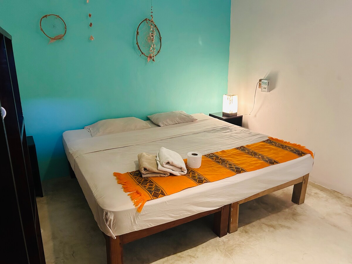 Wygodny i uroczy apartament z widokiem na ocean. Ciche i przyjazne rodzinom środowisko. Ma jedno łóżko, które jest duże, a drugie pojedyncze łóżko w korytarzu, które działa w tym samym czasie co sofa. Do dyspozycji gości jest również hamak i wystarczająco dużo miejsca na jogę lub medytację. Jest tam mały stół idealny do pracy z komputerem. Kuzyn jest dobrze wyposażony. Cała przestrzeń jest chroniona siatką ekranową, chłodna i zacieniona. Łazienka z toaletą zintegrowana z domem z ciepłą wodą.