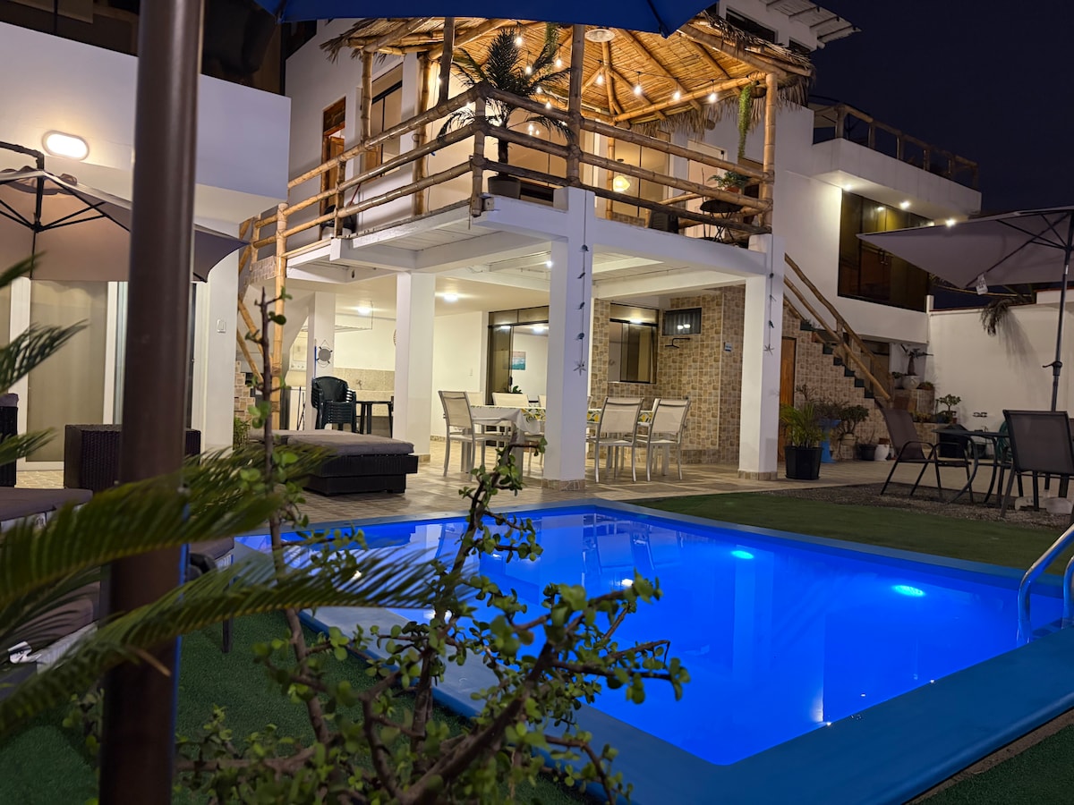Ciesz się niezapomnianym pobytem z rodziną lub przyjaciółmi w przestronnym, 3-piętrowym domu z basenem o powierzchni 12 m2 z wodospadem i miejscem do grillowania, z 4 przestronnymi pokojami i doskonałą wentylacją, 4 łazienkami z ciepłą wodą, w pełni wyposażoną kuchnią typu amerykańskiego, patio, jadalnią i salonem z widokiem na basen, garażem na 2 samochody. Z tarasu roztacza się piękny widok na zachód słońca. Położony w 100% spokojnej i bezpiecznej okolicy, w pobliżu San Bartolo i Punta Hermosa. Sur Chico czeka na Ciebie!