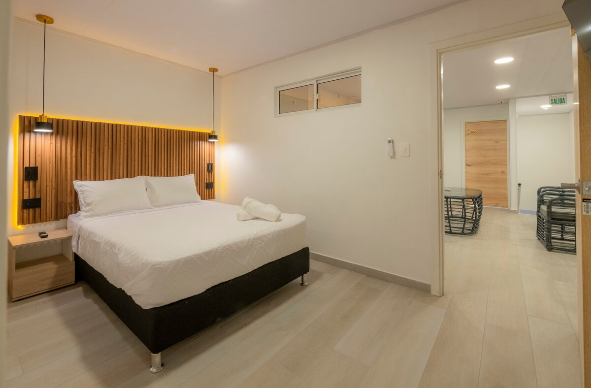 Descubre la tranquilidad del Caribe en Mykonos Beach Sai, un alojamiento diseñado para quienes buscan descanso, comodidad y cercanía al mar en uno de los destinos más hermosos de Colombia. Ubicado a pocos minutos del aeropuerto y a pasos de la playa, nuestro espacio combina un estilo moderno con esencia isleña, creando el ambiente perfecto para desconectarte y disfrutar del paraíso.