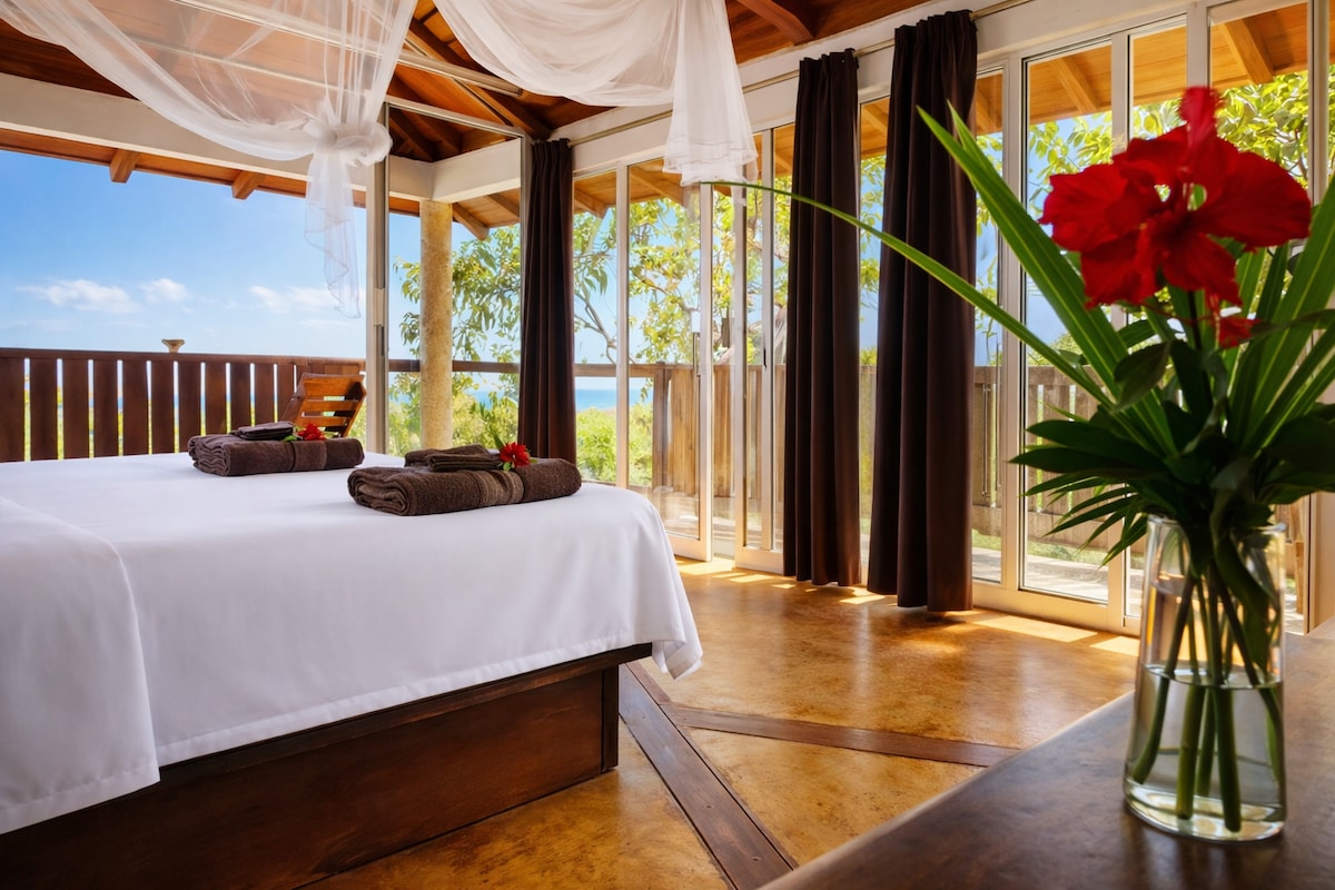 Prywatny pokój w głównym domu z widokiem na ocean.