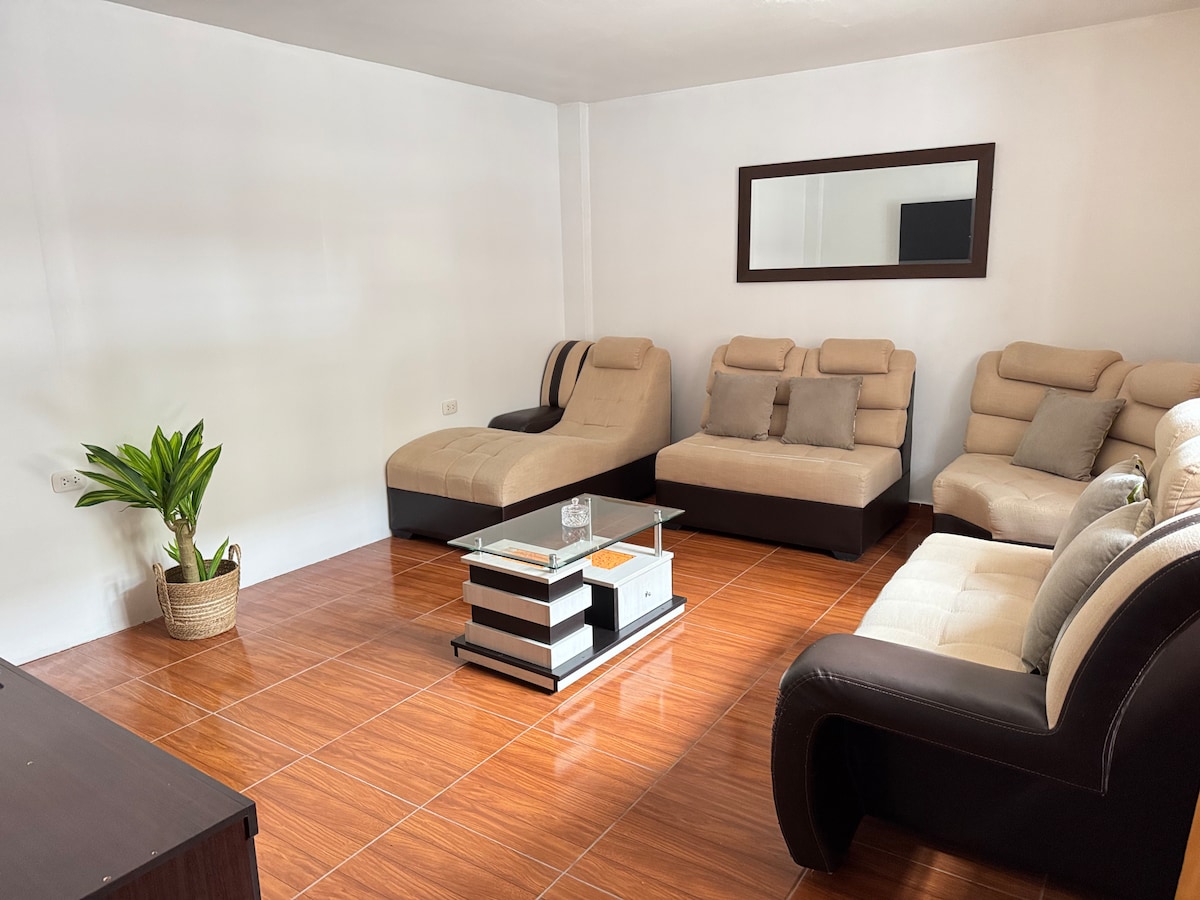 Piso entero en 5to piso. A 5 minutos del aeropuerto, y a 5 minutos de la Plaza de Armas de Cajamarca. Muy buena ubicación. A 3 minutos de los Centros Comerciales de la ciudad. Cuenta con: Habitación con 2 camas. Baño completo. Cocina equipada (2 ornillas inducción, hervidor eléctrico, olla arrocera, frigider, menaje Área de terraza disponible para parrillas, con excelente vista de la ciudad para que puedas disfrutar del amanecer y atardecer de nuestro hermoso cielo cajamarquino.