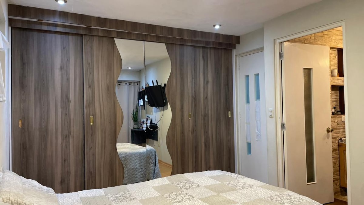 Nice and modern Mini-apartment on the 2nd floor. Ideal for families and/or groups of people looking to be close to the Plaza de Armas (7 blocks). It is a large room, about 40 m2, completely remodeled, with 2 queen beds and 2 square and a half bunk beds, dining room, TV room and private bathroom with hot water all day. It has common areas such as: Kitchen, Dining Room and Terrace. Excellent location, 400m from the Metro supermarket and back from the Limatambo clinic.