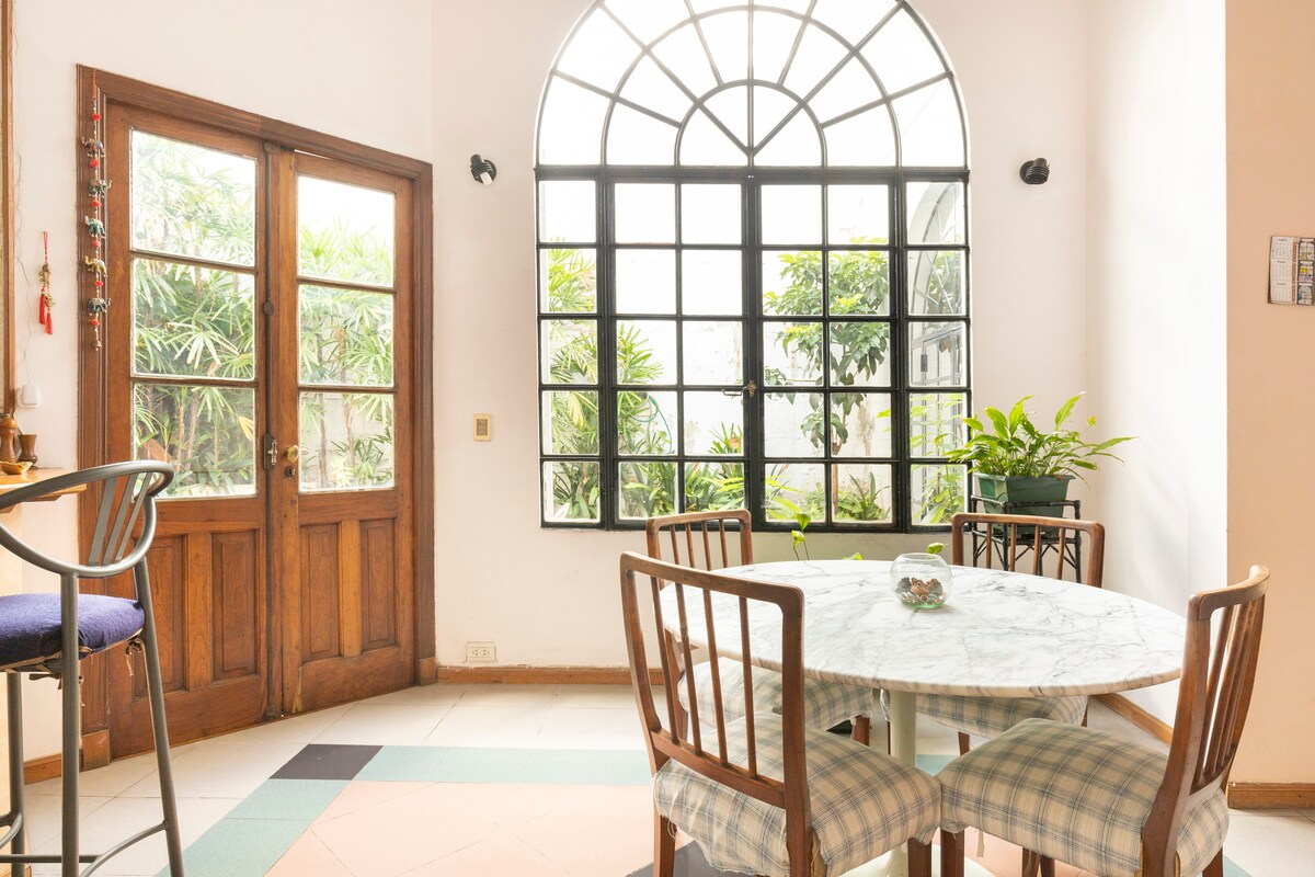 Welcome to this charming 1917 historic home in the heart of Buenos Aires, located in the Caballito/Almagro neighborhood, just 2 blocks from Subway Line A. It offers 2 bedrooms, 2 bathrooms, a workspace with kitchenette, living room, dining area, a patio, and a spacious sun terrace. In a safe area, it’s 40 minutes from the international airport, 25 from the domestic, and 15 from Palermo. With 200m² of indoor and outdoor space, it comfortably accommodates up to 9 guests, ensuring a memorable stay