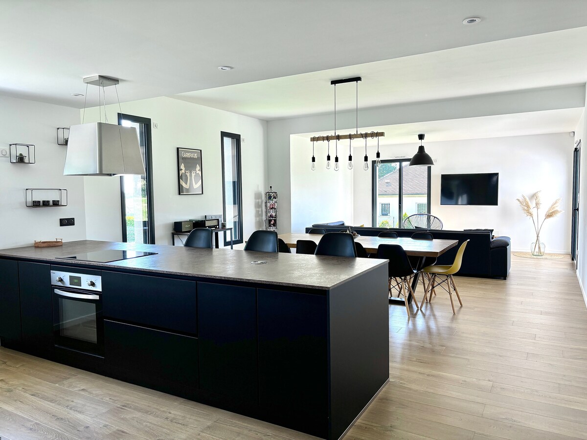 Magnifique maison cosy en plein centre d'Hautvillers, entièrement rénovée et classée Patrimoine Mondial de l'Unesco. Accessible pour 2 nuits ou plus, en famille ou entre amis pour vous détendre ou tout simplement profiter de la région. Elle possède une chambre avec de grandes baies vitrées accédant à une terrasse qui quant à elle donne une magnifique vue sur les vignes de Champagne et d' Epernay. C'est une maison moderne tout équipée avec rez-de-chaussée et deux étages.
