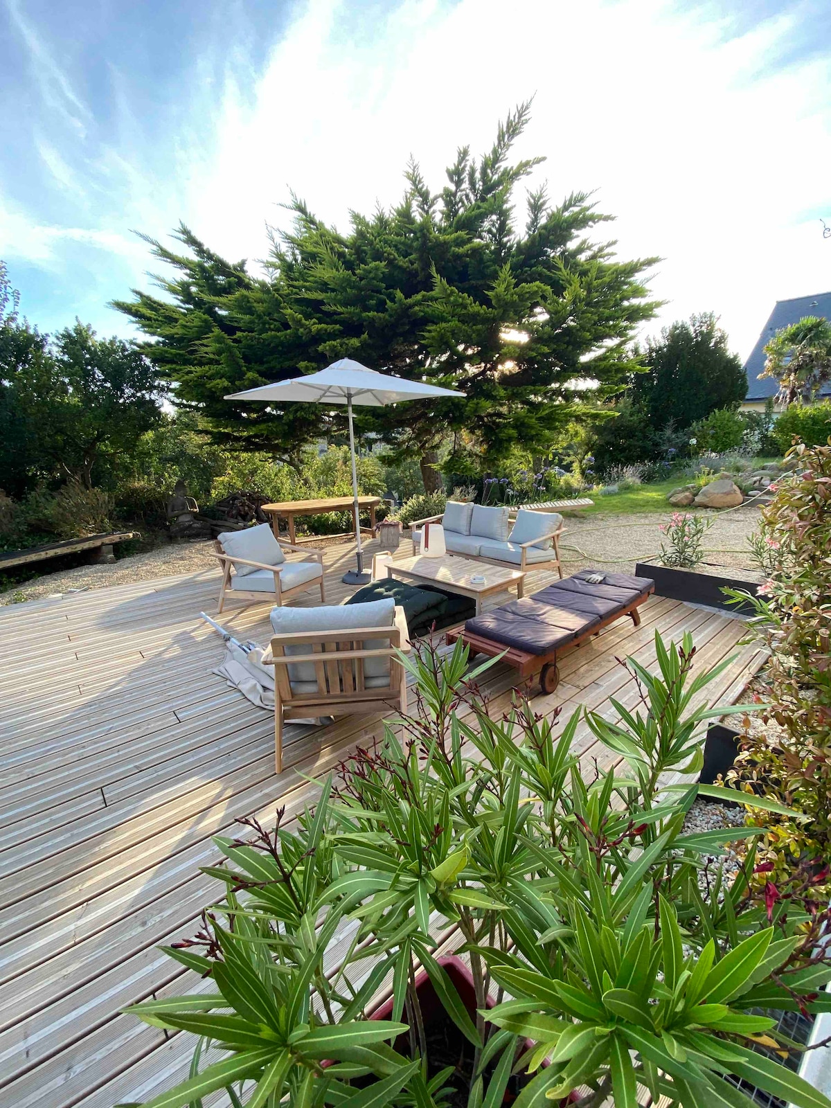 dom wakacyjny,przejrzysty i przyjemny. Wyposażona otwarta kuchnia,jadalnia, salon. Sypialnia na parterze (1 łóżko podwójne). Pokój na górze, (1 łóżko podwójne). Pokój na górze, (3 łóżka pojedyncze). Łazienka R.D.C.: wanna, prysznic. Łazienka na górze: prysznic, toaleta. Oddzielna toaleta w pomieszczeniu magazynowym R.D.C.. pralka. taras, ogród. grill,leżak. garaż. Dom idealny dla par i rodzin (z dziećmi). Dostarczone prześcieradła i ręczniki. Wi-Fi. Lipiec/sierpień:wynajem od soboty do soboty