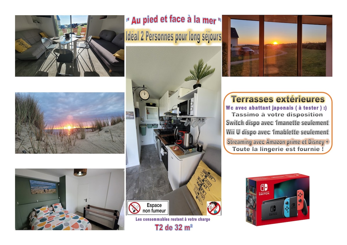 Vue MER/ RDC/ T2/ Plage de la falaise/ Suréquipé