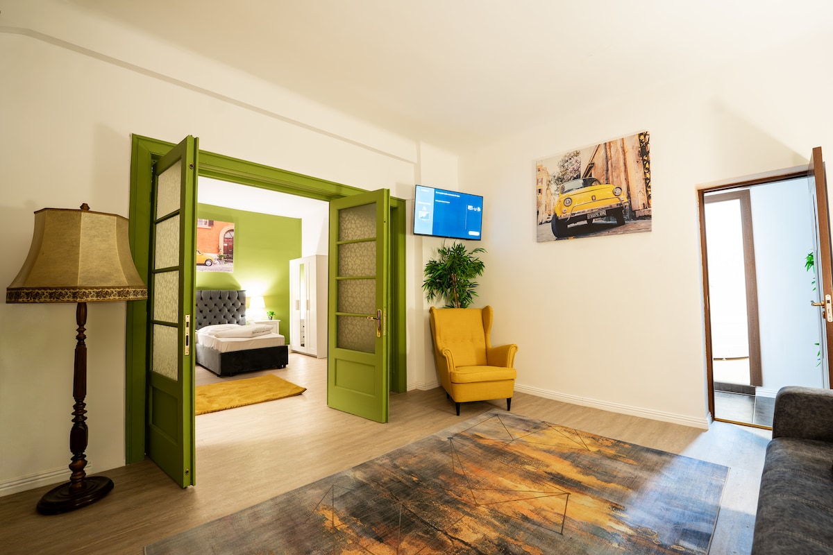 Nowoczesny apartament rodzinny w pełni odnowiony w sierpniu 2020 roku, oferujący zakwaterowanie dla maksymalnie 4 osób. Do dyspozycji Gości jest przestronny salon z telewizorem Smart TV oraz telewizorem WIFI, luksusowa sypialnia typu master z telewizorem Smart TV oraz sypialnia dla dzieci z rozkładanym łóżkiem, biurkiem oraz tablicą. W kuchni znajduje się lodówka, piekarnik i ekspres do kawy. Apartament znajduje się 5 minut jazdy od centrum Ploiesti, a także 5 minut jazdy od centrum handlowego Ploiesti. Nasz międzynarodowy port lotniczy znajduje się zaledwie 46 km od obiektu.