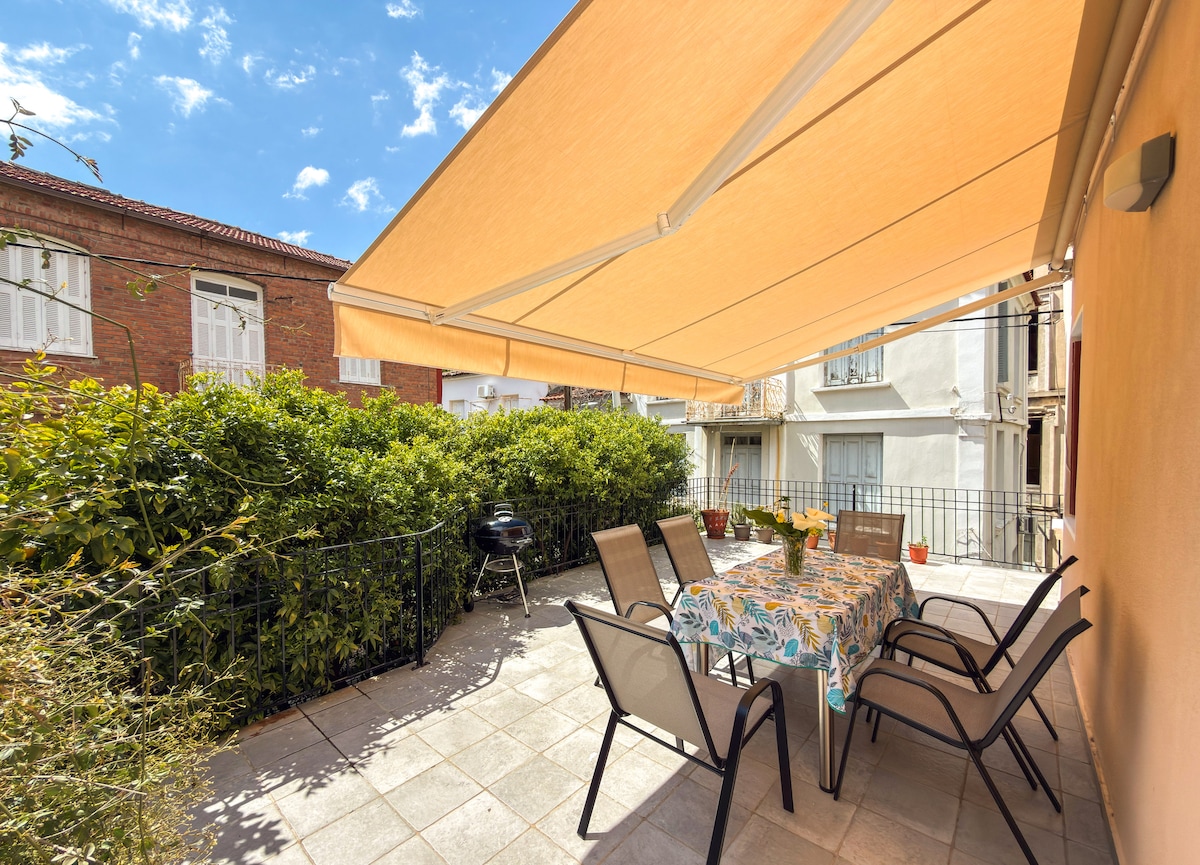 Autentyczny dwupiętrowy dom w samym sercu Mitilene z prywatnym podwórkiem – idealny dla rodzin i grup poszukujących komfortu i przestrzeni na świeżym powietrzu w centrum miasta. Dom łączy w sobie klasyczny charakter z przytulną atmosferą i znajduje się w cichej dzielnicy, w odległości spaceru od sklepów, kawiarni i portu. Dziedziniec jest jego wyróżnikiem – to rzadko spotykane miejsce odpoczynku na świeżym powietrzu w samym sercu miasta.