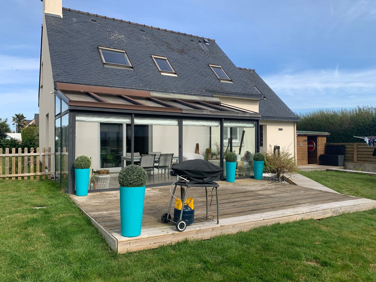 Ten wyjątkowy dom architektoniczny został stworzony przez Erwana Le Berre. Widok na morze rozciąga się na ponad 180°: wschód, południe i zachód. Przyjemny basen kryty jest klimatyzowany. Pomieszczenia mieszkalne są rozmieszczone na 2 piętrach: 1 duży salon i jadalnia z dużymi oknami z widokiem na morze oraz antresola z telewizorem. Dla 6 osób składa się z 4 pokoi: 2 dużych i 2 małych. Prywatna ścieżka prowadzi na plażę. Klasyfikacja obiektów turystycznych: 3 gwiazdki